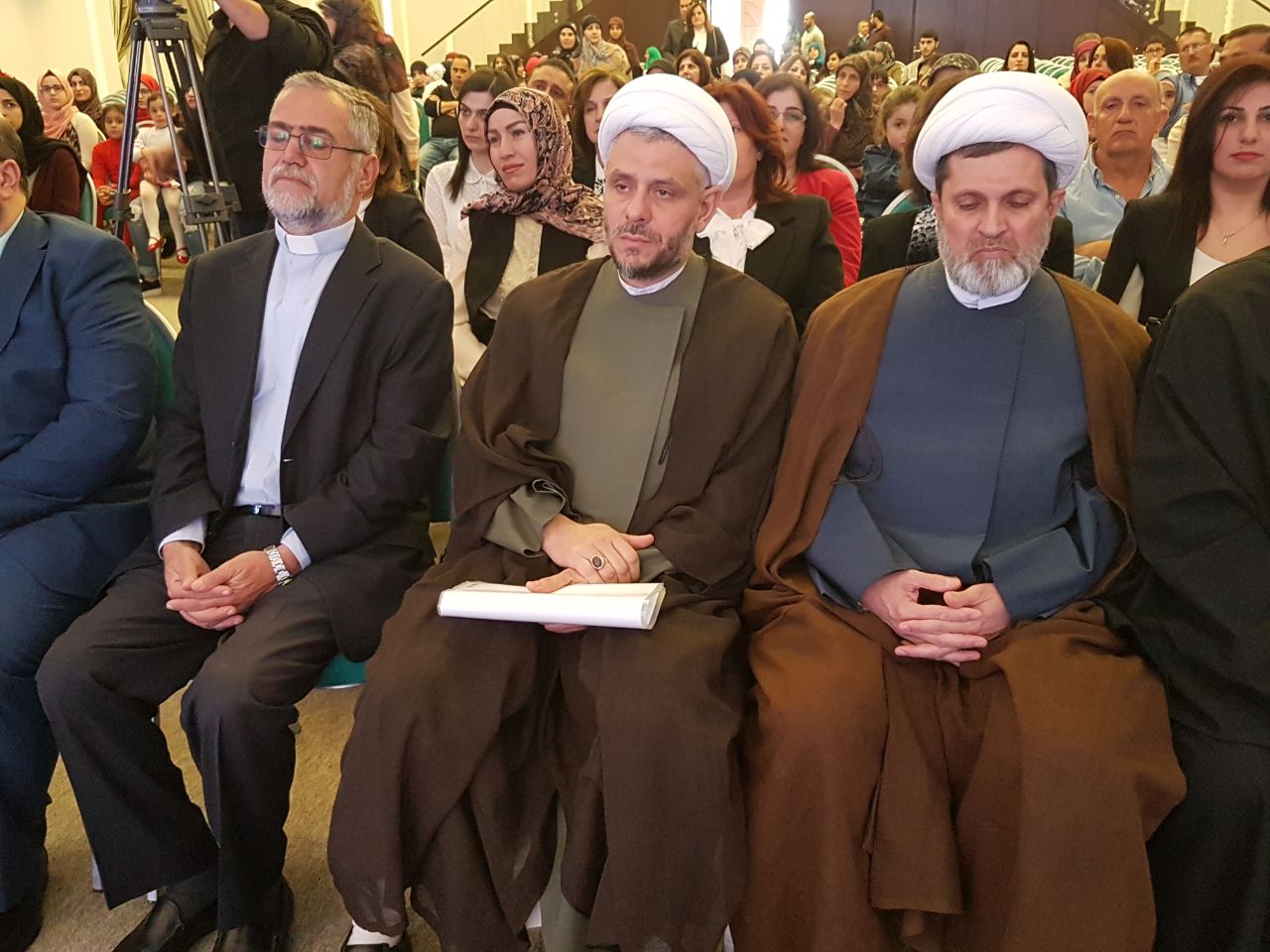 إحتفل تلامذة ثانوية راهبات القلبين الاقدسين في مرجعيون وتلامذة ثانوية عيسى بن مريم التابعة لجمعية المبرات للعلامة السيد محمد حسين فضل الله، بعيد البشارة تحت عنوان "مريم العذراء عنوان كبير للقاء بين الاسلام والمسيحية"، على مسرح مدرسة المبرات في الخيام، وهو تقليد سنوي بين المدرستين يهدف الى تلاقي ابناء المنطقة وتوجيه رسالة تعايش ومحبة وسلام، في حضور النائب أنور الخليل ممثلا بزياد سليقا، النائب اسعد حردان ممثلا بنيللي حداد، متروبوليت صيدا وصور وتوابعهما المطران الياس الكفوري ممثلا بالأب فيليب العقلة، عضو الهيئة الشرعية في مكتب المرجع السيد محمد حسين فضل الله الشيخ جهاد فرحات، رئيس بلدية جديدة مرجعيون أمال الحوراني ممثلا بحسان عبلا، رئيس بلدية الخيام علي عبدالله ممثلا بمحمد حمود، رئيس مركز الدفاع المدني أنيس عبلا، آمر سرية درك مرجعيون الرائد شربل حبيب، مسؤول مكتب الامن العام النقيب طوني طانيوس، مديرة ثانوية راهبات القلبين الأقدسين في جديدة مرجعيون الأخت لبيبة مبارك، مدير ثانوية "عيسى بن مريم" و"مبرة النبي ابراهيم" احمد عطية، وحشد من رؤساء المدارس والجمعيات والمصارف والأحزاب ورؤساء البلديات والمخاتير وفاعليات ولفيف من الكهنة والراهبات وأبناء المنطقة.