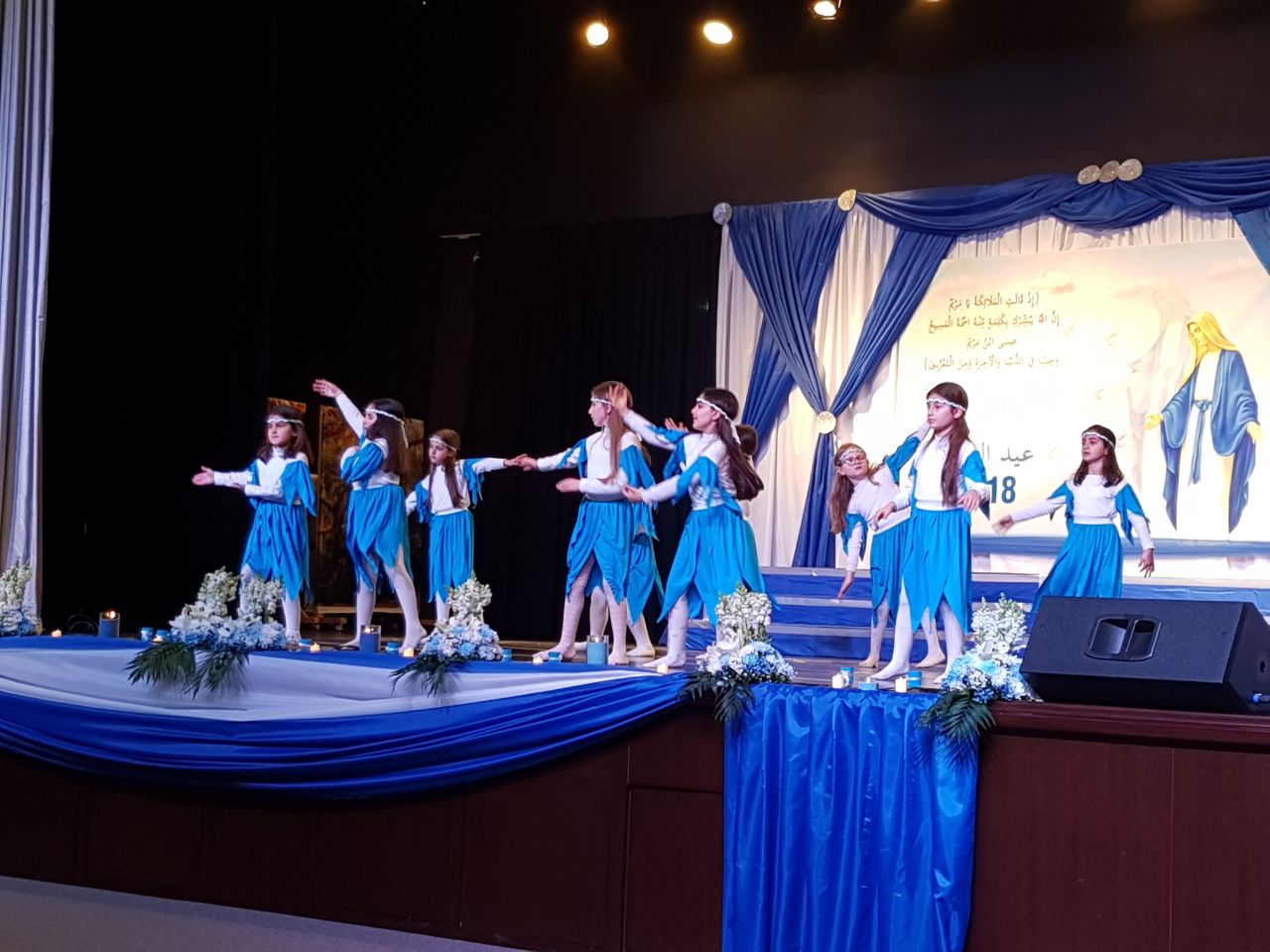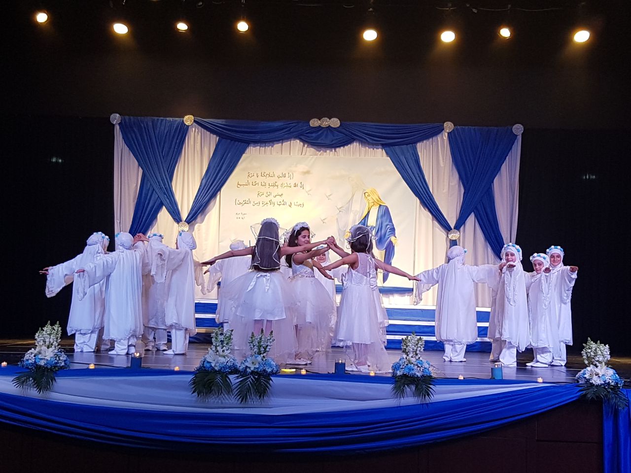 وتخلل الاحتفال لوحات راقصة لتلامذة المدرستين وتراتيل واناشيد ومشهديات عن السيدة العذراء.