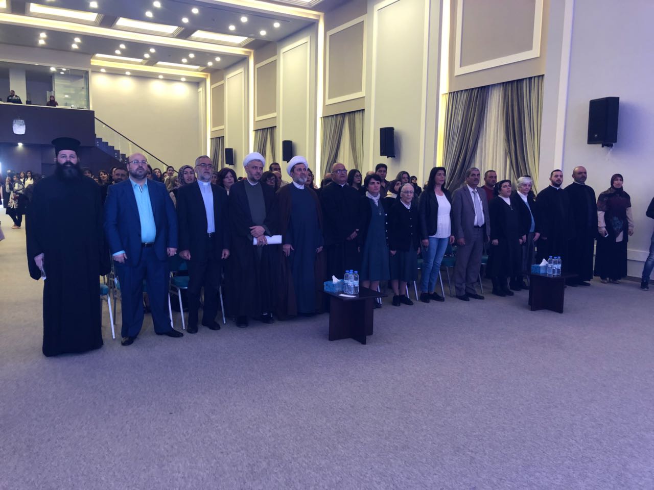 بدأ الحفل بالنشيد الوطني اللبناني وكلمة ترحيب من عريف الحفل، فتلاوة لفاتحة القرآن الكريم وآية من الانجيل المقدس من تلاميذ المدرستين.