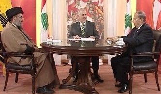 موضوع رئيس الجمهورية وكان هناك نقاشا حول عزل العماد لحود – وفي نقاش في قيادة الحزب مع القياديين دعموا ترشيح الجنرال عون وكانت الخلفية السياسية لها علاقة ببناء البلد وبشخصية العماد المستقلة وطبعا هذا الموقف كان منسجما مع قواعدنا التي كانت في الاستطلاع تؤيد الجنرال بنسبة 99 % وطرحنا الموضوع مع الجنرال وقلنا له موضوع الاعلان رسميا في تصرفك وطبعا كان رأي الجنرال عدم الاعلان لتكتيك سياسي عنده. ردا عل سؤال اكد السيد انه قد ابلغ حزب الله البطريرك والسفير البابوي وبعض السفراء عن دعم ترشيح الجنرال عون.