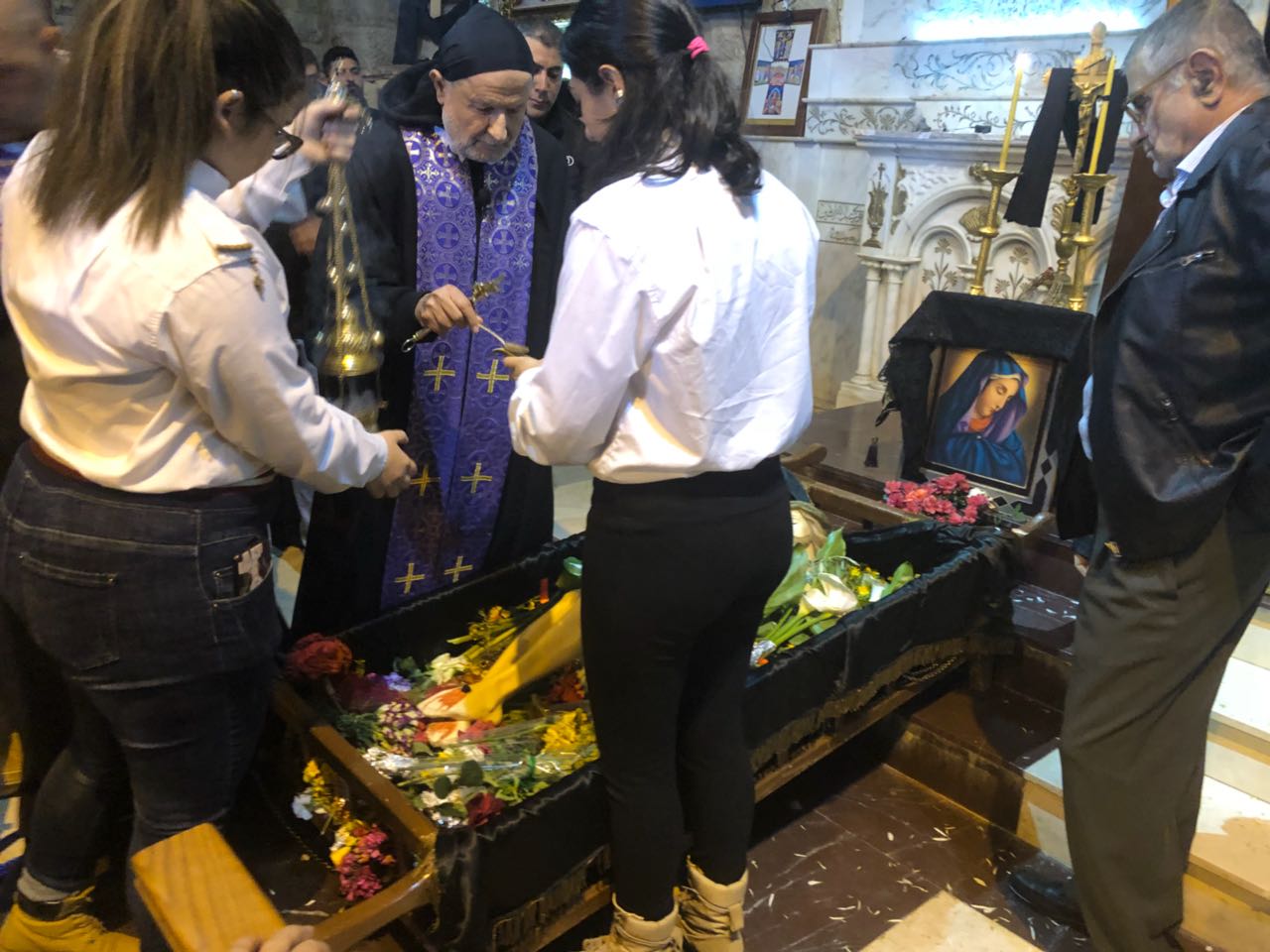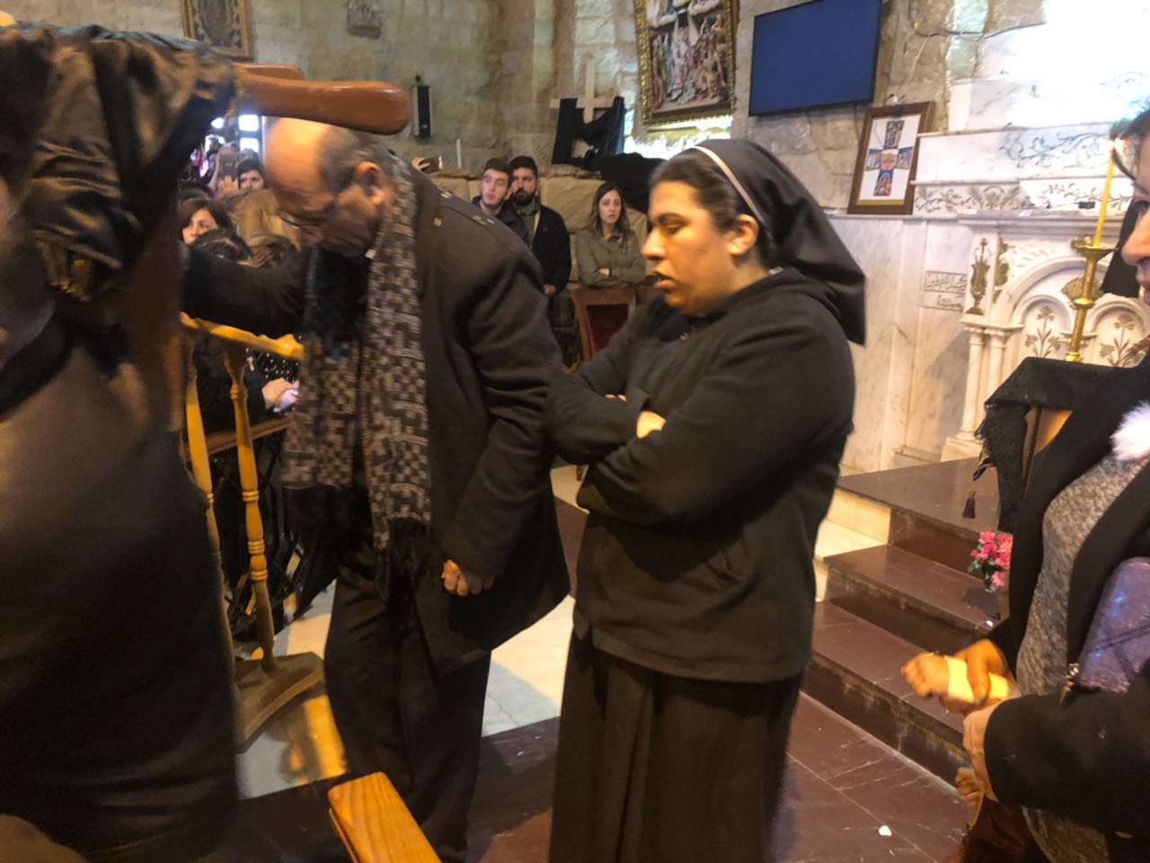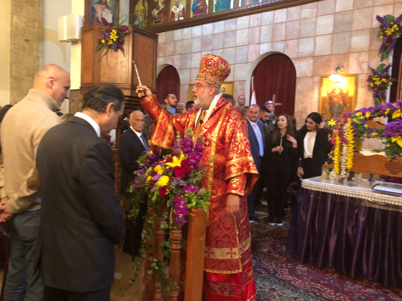 وفي الكنيسة ترأس المطران الحاج رتبة الصليب وعاونه المنسينيور منصور الحكيم والخوري بيار الراعي، وبعد الإنجيل المقدس ألقى الحاج عظة قال فيها: "نحن أمام أعظم سر بالعالم، سر الصليب، ولا نستطيع أن نفهمه لأنه عظيم. لماذا الله الأب رضي أن يسلم ابنه للموت؟ ولماذا مات المسيح هذه الموتة الشنيعة؟ خالق الكون لماذا سمح للبشر أن يحكموا على ابنه بالصلب؟ وأن يحاكم كمجرم؟ وفي النهاية يعلق على خشبة الصليب بين لصين؟"، مضيفا "أمام الصليب لا نفهم كثيرا ماذا حصل، لكننا أمامه نصلي ونسجد، لأن هذه الرتبة هي رتبة السجود، نسجد ونصرخ مع قائد المئة، الذي كان مسؤولا عن حراسة يسوع المسيح وعن تنفيذ الحكم به. كان هذا ابن الله".