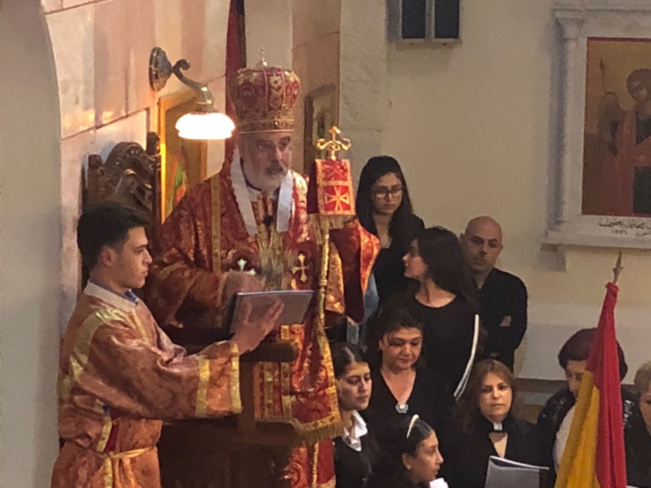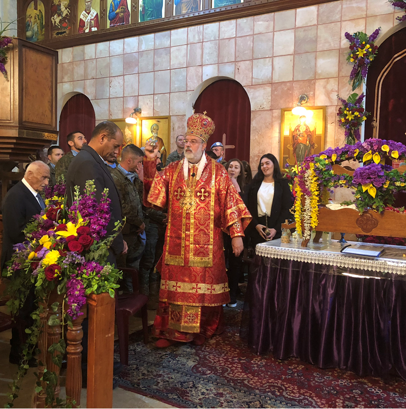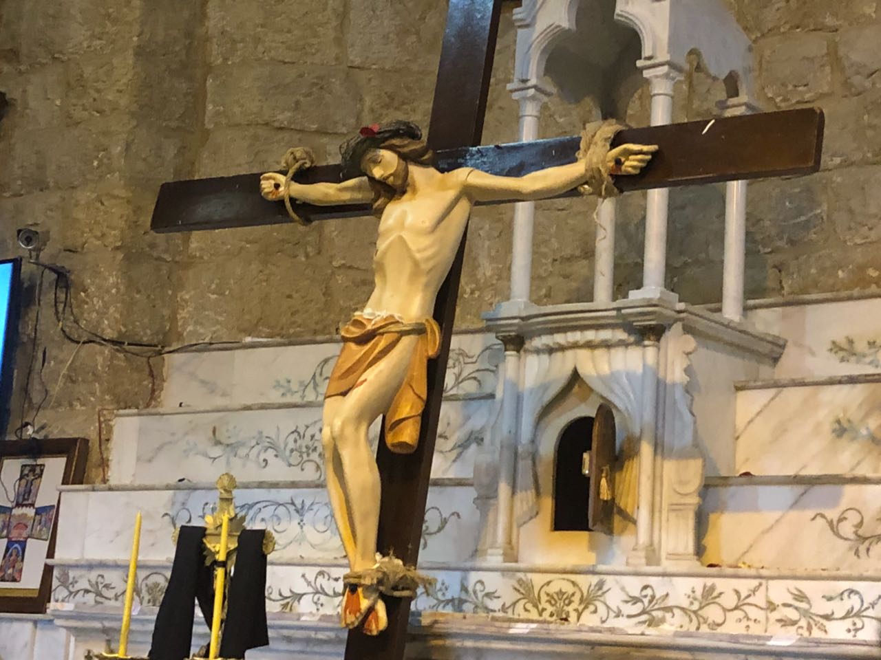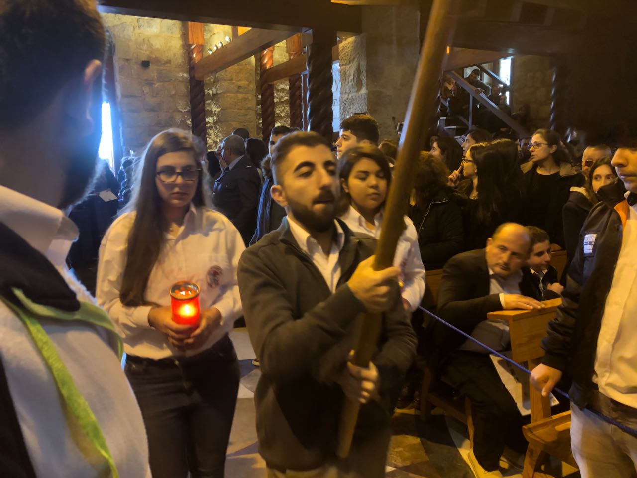 وفي الكنيسة ترأس المطران الحاج رتبة الصليب وعاونه المنسينيور منصور الحكيم والخوري بيار الراعي، وبعد الإنجيل المقدس ألقى الحاج عظة قال فيها: "نحن أمام أعظم سر بالعالم، سر الصليب، ولا نستطيع أن نفهمه لأنه عظيم. لماذا الله الأب رضي أن يسلم ابنه للموت؟ ولماذا مات المسيح هذه الموتة الشنيعة؟ خالق الكون لماذا سمح للبشر أن يحكموا على ابنه بالصلب؟ وأن يحاكم كمجرم؟ وفي النهاية يعلق على خشبة الصليب بين لصين؟"، مضيفا "أمام الصليب لا نفهم كثيرا ماذا حصل، لكننا أمامه نصلي ونسجد، لأن هذه الرتبة هي رتبة السجود، نسجد ونصرخ مع قائد المئة، الذي كان مسؤولا عن حراسة يسوع المسيح وعن تنفيذ الحكم به. كان هذا ابن الله".