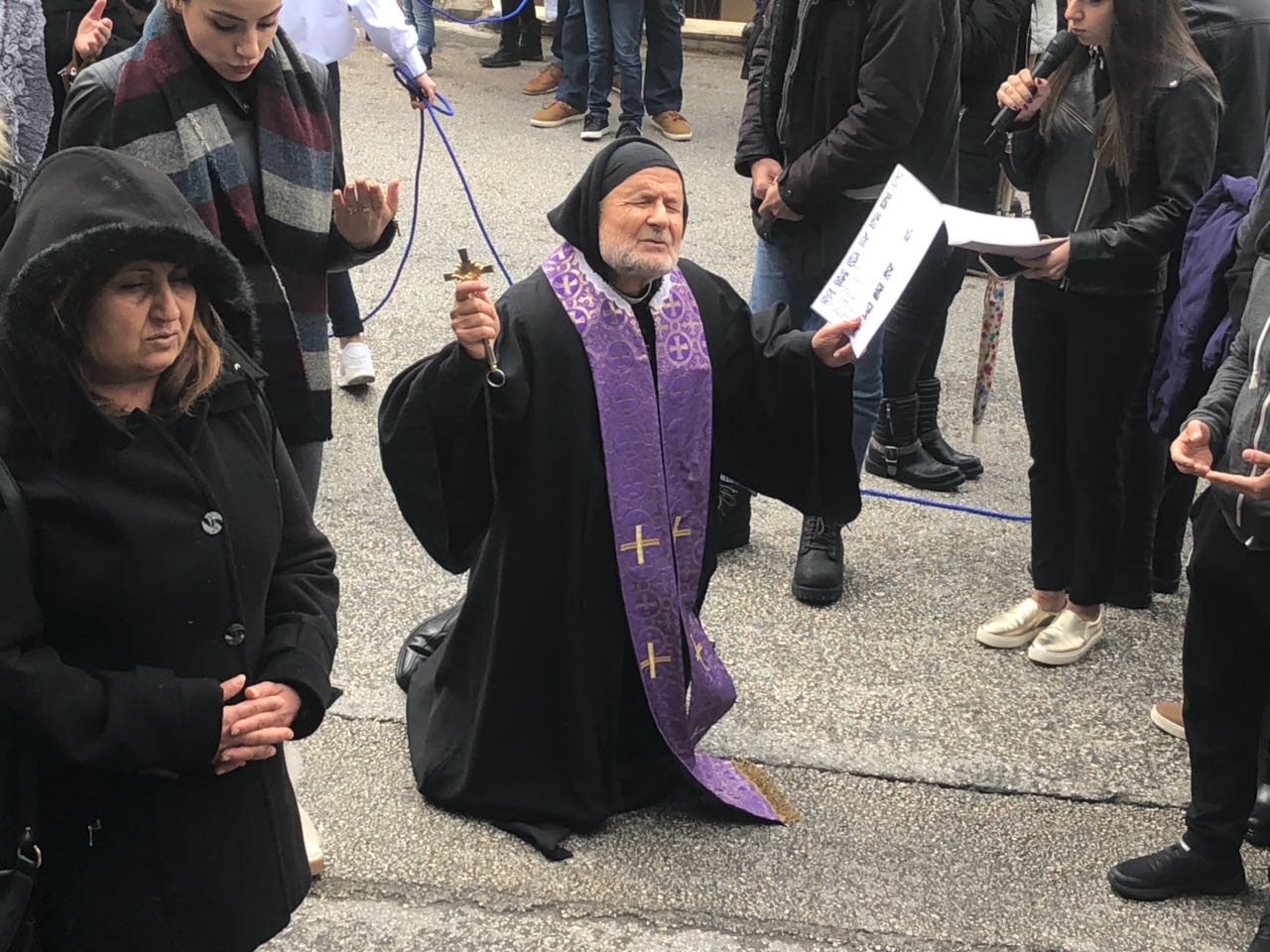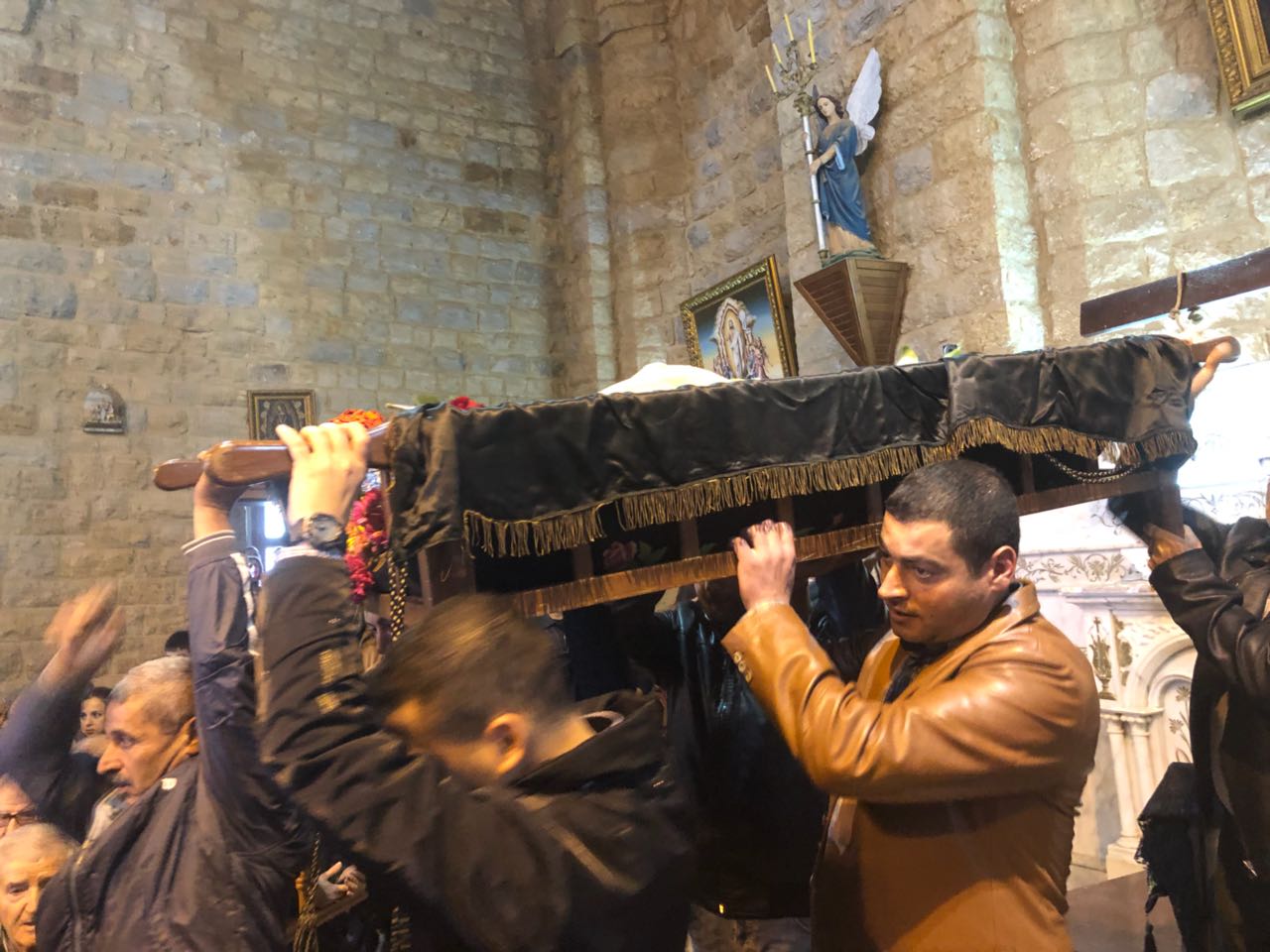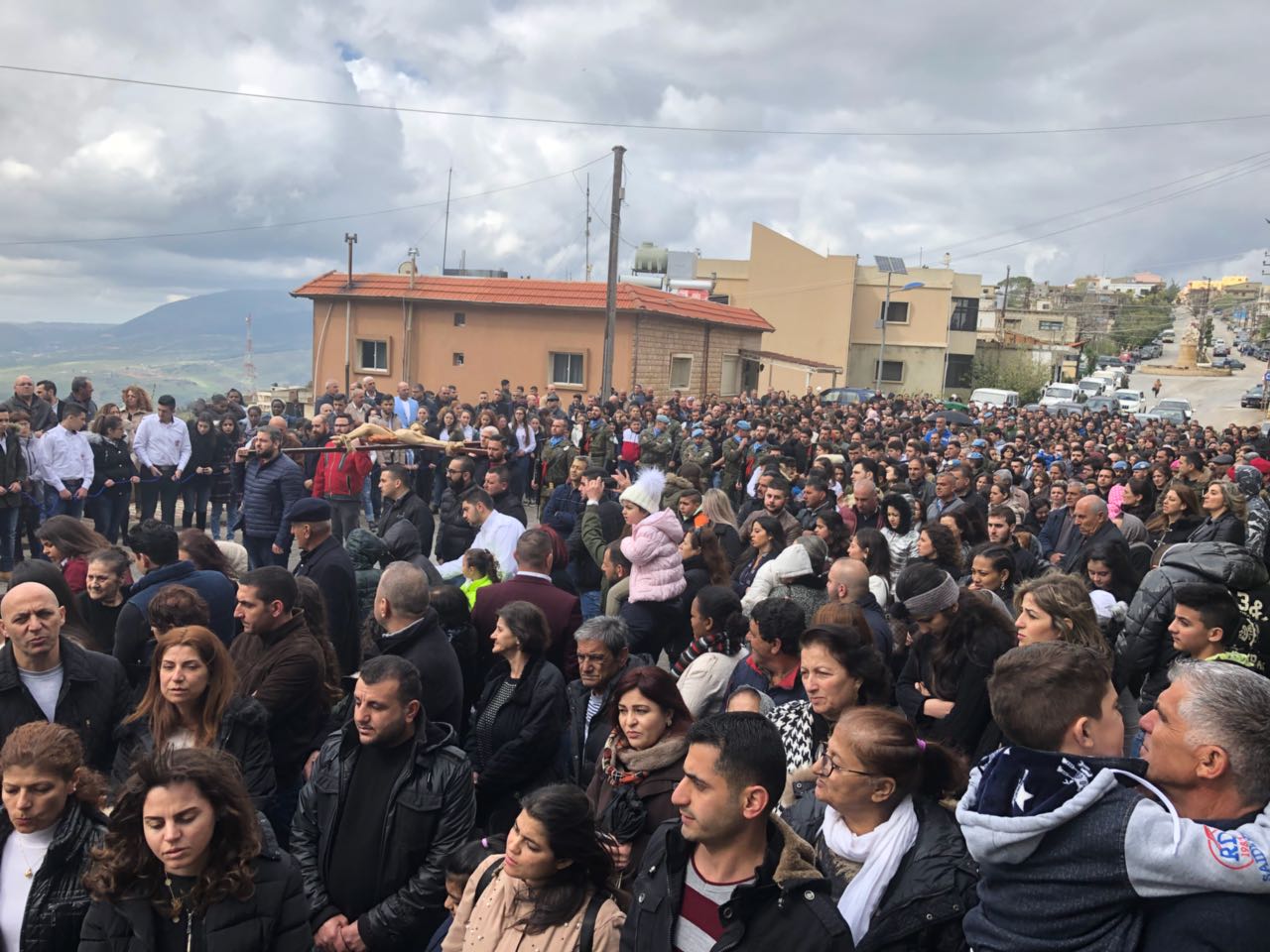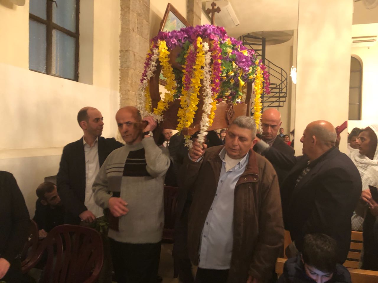 وشارك المؤمنون بتطواف الصليب، فجابوا الأحياء والشوارع الداخلية للبلدة، لإحياء آلام السيد المسيح، يتقدمهم كاهن الرعية الأب حنا الخوري والأب شربل برقاشي، على وقع التراتيل وموسيقى الفرقة الأسبانية. وتوجهت المسيرة إلى الكنيسة الإنجيلية الوطنية وسط البلدة، ومنها إلى كنيسة القديس جاورجيوس للروم الأورثوذكس، ثم انتقلت إلى كاتدرائية القديس بطرس للروم الكاثوليك، واختتمت مراحل آلام السيد المسيح في كنيسة سيدة الخلاص المارونية برتبة دفن المصلوب.