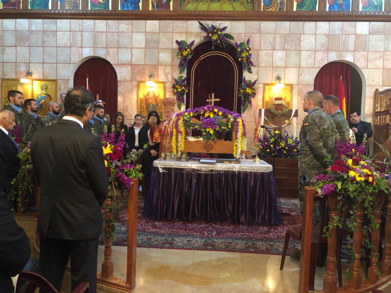 وفي كاتدرائية القديس بطرس في جديدة مرجعيون أيضا، ترأس رئيس أساقفة قيصرية فيليبس ومرجعيون وتوابعهما للروم الملكيين الكاثوليك المتروبوليت جاورجيوس حداد رتبة دفن المسيح، عاونه لفيف من الكهنة، وخدمته جوقة الرعية، في حضور قائد القطاع الشرقي في "اليونييفل" الجنرال فرانسيسكو خافيير روميرو ماري، رئيس بلدية جديدة مرجعيون آمال حوراني، رئيس الرابطة الحيدرية حسين رشيدي وحشد كبير من المؤمنين من أبناء البلدة والجوار، حيث حملت فرقة من الكتيبة الأسبانية النعش على الأكف ودخلوا به الكنيسة على أنغام الفرقة الموسيقية الأسبانية.