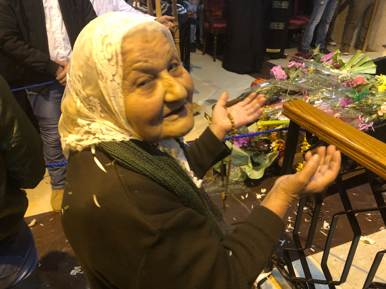وفي الختام، تبارك المؤمنون من النعش قبل وضعه في القبر.
