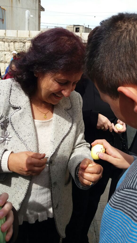 وفي نهاية القداس، تم توزيع بيض العيد الملون، رمز الإنبعاث والتجدد، على المؤمنين عند خروجهم من الكنيسة، على وقع أناشيد وتراتيل القيامة المجيدة.