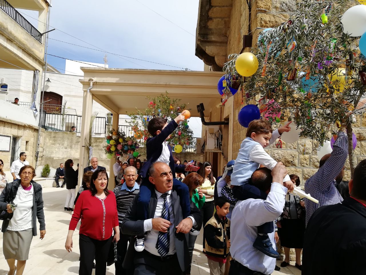 بعد القداس، طاف المؤمنون خلف المطران الكفوري والكهنة في الساحة التراثية لجديدة مرجعيون إنطلاقا من كنيسة القديس جاورجيوس وحمل الأطفال الشموع الملونة وأغصان الزيتون المزدانة بالحلوى والبالونات الملونة، وساروا في ثلاث دورات في الساحة العامة وسط البلدة، على وقع قرع الأجراس تهليلا بالمسيح الآتي بفرح إلى قلوب الأطفال، بمواكبة أمنية لعناصر الجيش وقوى الامن الداخلي.