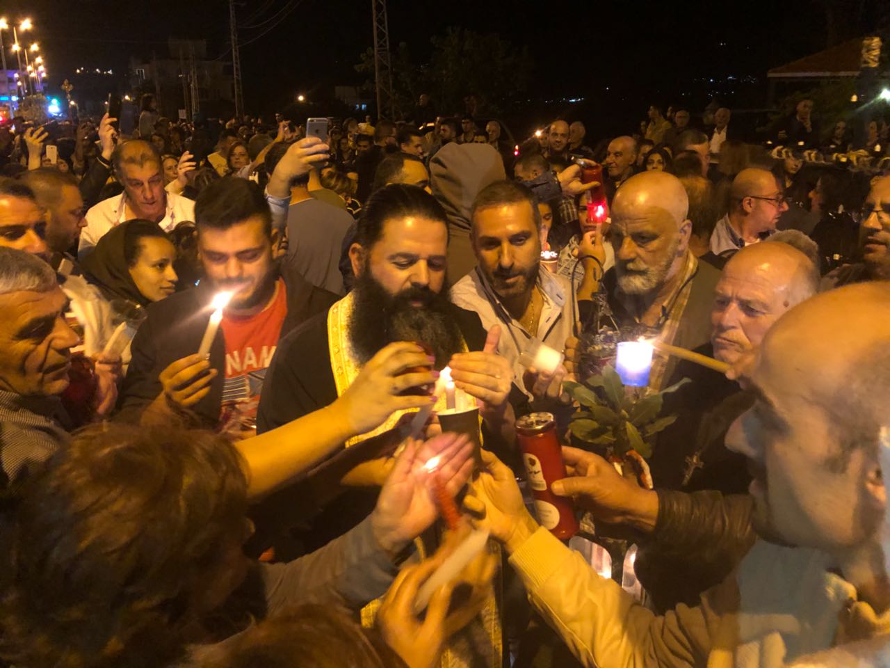 وصلت عند الساعة العاشرة من مساء اليوم الشعلة المقدسة الى جديدة مرجعيون حيث كان باستقبالها الأب فيليب العقلة، كاهن رعية مار جاورجيوس للروم الأورثوذكس، والأب حنا الخوري، كاهن رعية السيدة للموارنة، وحشد كبير من المؤمنين الذين جاؤوا من مختلف البلدات للتبارك وإضاءة شموعهم من الشعلة الآتية من قبر المسيح في أورشليم حيث ساروا غير مكترثين بالإمطار مرنمين "المسيح قام من بين الأموات" وصولاً الى كنيسة مار جاورجيوس بمؤازرة قوى الأمن وأمن الدولة وعناصر بلدية جديدة مرجعيون.
