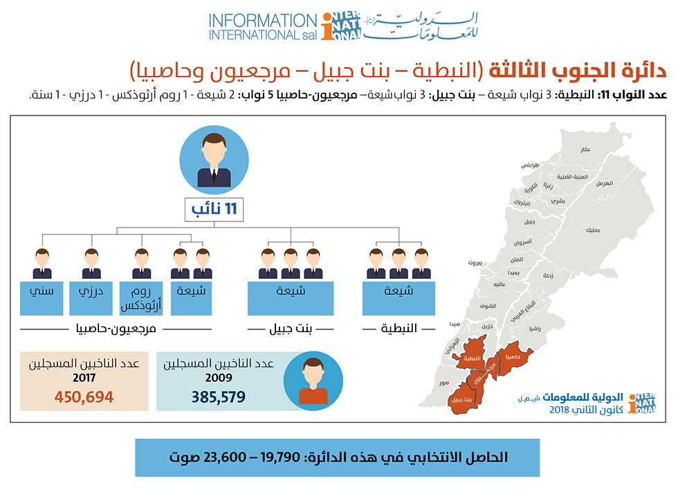 بلغ عدد الناخبين في دائرة الجنوب الثالثة بحسب إحصاءات العام 2017: