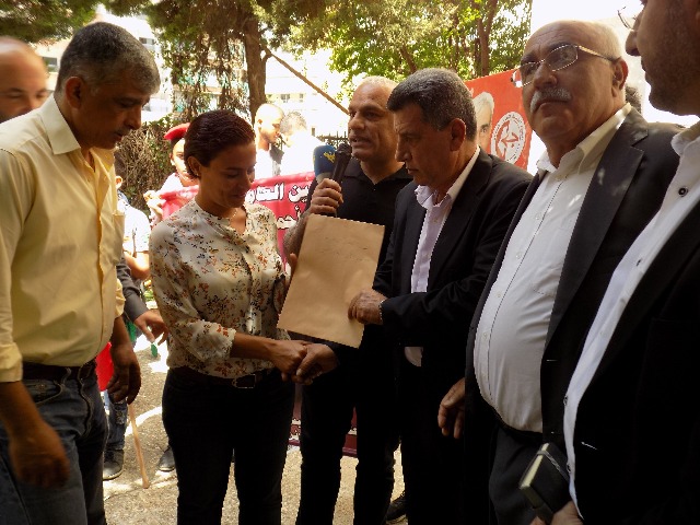 ثم تلا فتحي أبوعلي مذكرة سلمها أبو جابر، والأسير المحرر عبد الله الدنان، وفتحي أبو علي، وفؤاد ظاهر، والأسير المحرر تيسير سليمان، والأستاذ عباس قبلان لمندوبة الصليب الأحمر الدولي .