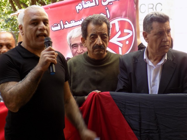 ثم كانت كلمة لمسؤول العلاقات السياسية للجبهة الشعبية لتحرير فلسطين في لبنان، أبو جابر، حيّا فيها الأسرى البواسل، وفي مقدمهم الأمين العام للجبهة الشعبية لتحرير فلسطين، أحمد سعدات، مؤكدا على ضرورة استمرار التحركات لنصرة الأسرى .