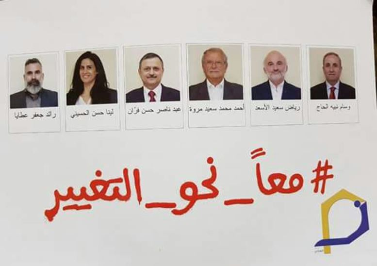 * أعضاء لائحة صوت واحد للتغيير: د. علي حاج علي (عن قضاء النبطية) ، ود. هلا ابو كسم، ود. سعيد عيسى والمهندس غسان حديفة (عن قضاء مرجعيون- حاصبيا)، ود. احمد مراد، والمحامي عباس سرور والأستاذ حسين بيضون ( عن قضاء بنت جبيل).