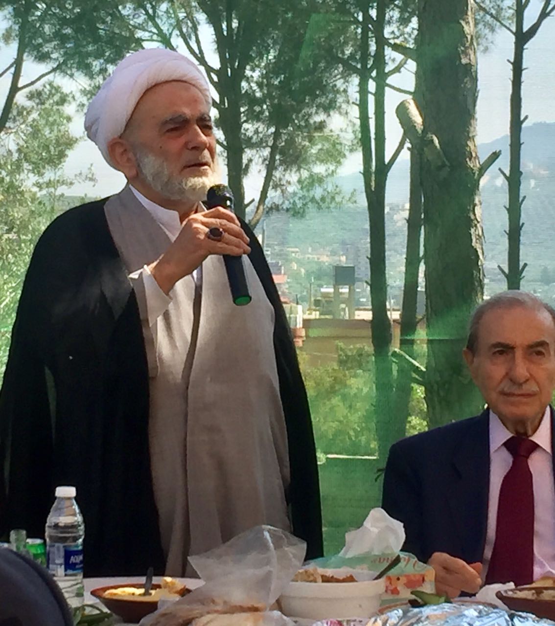 ثم القى فضيلة الشيخ غالب سليقا كلمة موجزة مستذكراً العلاقة الخاصة التي كانت تربطه بالمرحوم والد صاحب الدعوة المحامي غسان شيت ومتوقفا عن بعض المحطات التاريخية التي جمعت بينهما وبالأخص أثناء فترة الاحتلال الصهيوني المقيت للمنطقة الحدودية في الربع الأخير من القرن المنصرم، ذاكر أن أبناء الموحدين الدروز في بلدة المطلة الحدودية كانوا أول ضحايا التهجير القسري الذي نشأ عن الاستيطان الصهيوني البغيض، وذلك عندما اشترى البارون الإنكليزي روتشيلد أراضي بلدة المطلة من الثري الصيداوي (جبور رزق الله) في سنة (1885م) وساعتئذ جرى الابعاد الجبري لسكان المطلة الموحدين الى العمق اللبناني وبالأخص بلدة المارية القريبة منها في الجانب اللبناني، ولتصبح في عام (1996م) بلدة المطلة أول مستوطنة صهيونية في المشرق العربي، وكان قبل ذلك قد حصل اغتيال زعيم الموحدين الدروز في منطقة المطلة (الشيخ علي حجار)، ورميت جثته بالقرب من نبع الحمام فسهل الخيام الرحيب، والتي لم تكشف ملابستها حتى يومنا هذا.