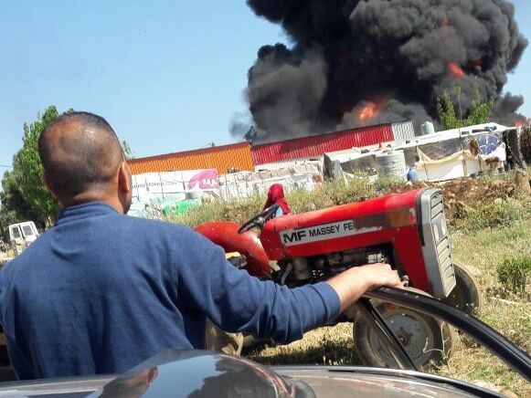 وقد أتى الحريق على المعمل بكامله إضافة إلى سبعة خيم للنازحين السوريين، إذ امتدّ الى عدة أماكن بفعل سرعة الرياح.