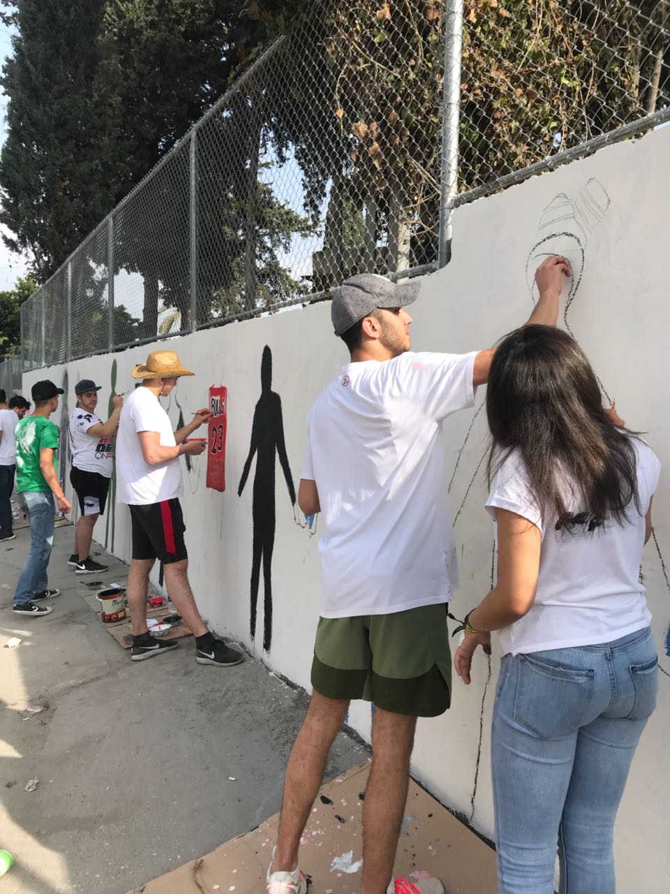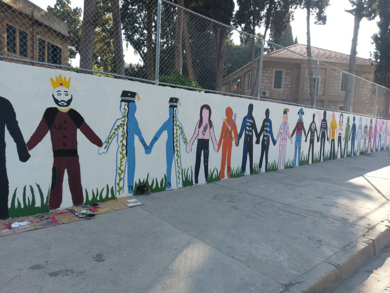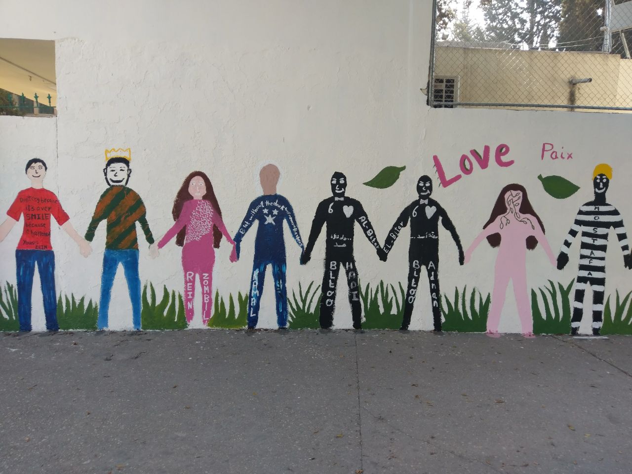 تعبيرًا عن التضامن في ما بينهم، قام طلاب الصفوف المنتهية في مدرسة الفنون الإنجيلية برسم أنفسهم على حائط المدرسة متماسكين، حيث عبر كل طالب عن نفسه بالطريقة التي تعنيه.
