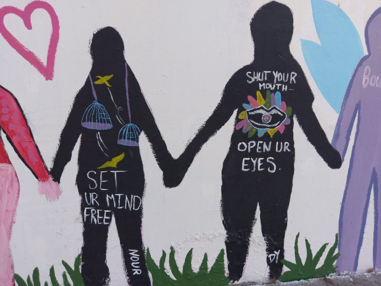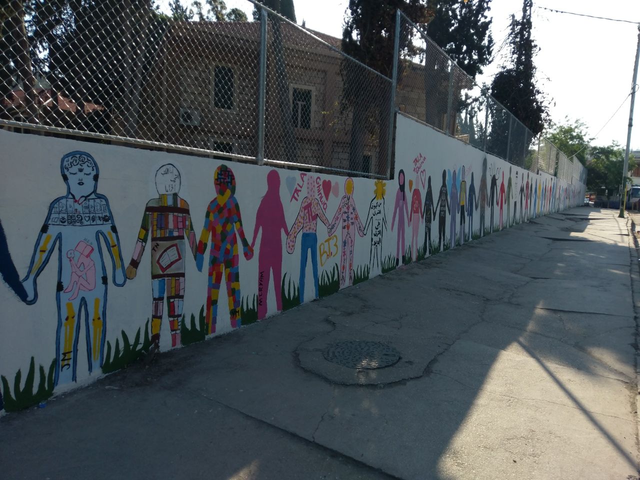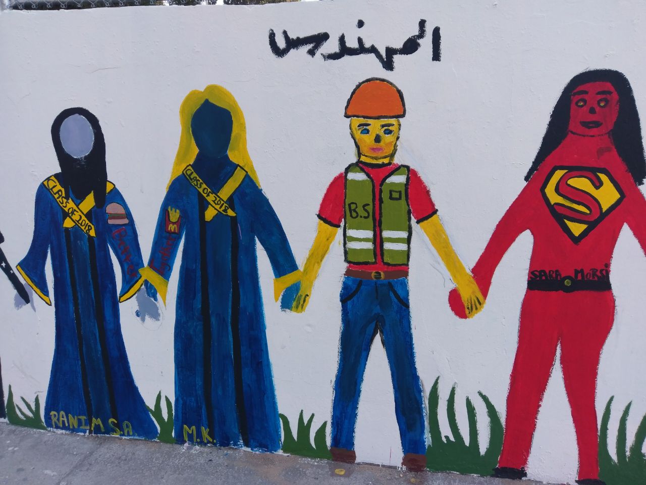 تعبيرًا عن التضامن في ما بينهم، قام طلاب الصفوف المنتهية في مدرسة الفنون الإنجيلية برسم أنفسهم على حائط المدرسة متماسكين، حيث عبر كل طالب عن نفسه بالطريقة التي تعنيه.