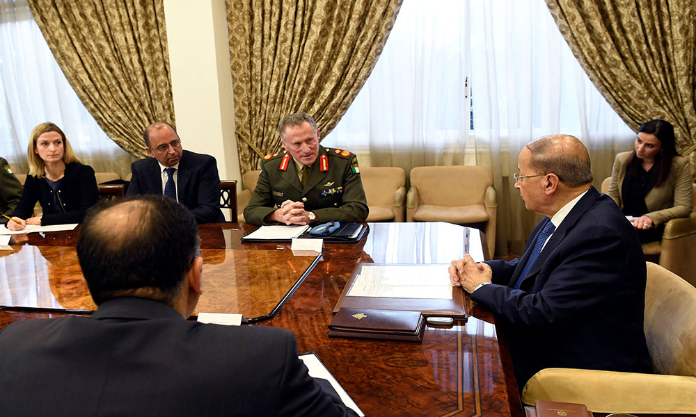 زار القائد العام لليونيفيل الميجور جنرال مايكل بيري فخامة رئيس الجمهورية العماد ميشال عون في القصر الرئاسي في بعبدا، حيث أطلعه على الوضع في منطقة عمليات اليونيفيل في جنوب لبنان وعلى أعمال بناء جدار الفصل الإسرائيلي الجاري على طول الخط الأزرق مع لبنان. وقال إن منطقة العمليات التي تبلغ مساحتها 1060 كيلومتراً مربعاً بين نهر الليطاني والخط الأزرق يسودها الهدوء بشكل عام.