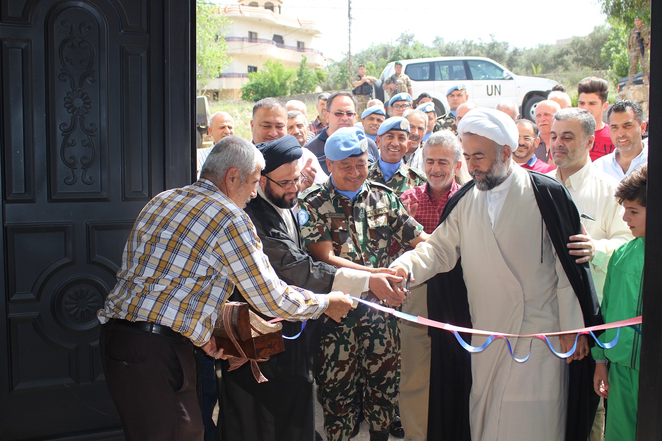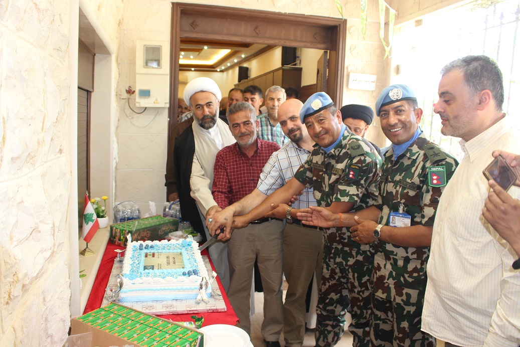 بدأ برنامج الحفل عند الساعة 10:30 العاشرة والنصف صباحاً بقطع الشريط في النادي الرياضي . بعدها تفقد الفريق النادي الرياضي ثم انتقل إلى مبنى البلدية لاستكمال البرنامج. وللمناسبة ألقى كل من الجنرال سانجاي ثابا ورئيس البلدية السيد محمد طرمس كلمة أمام الحضور في قاعة البلدية وبحضور اكثر من 50 شخصا" من بينهم أعضاء اليونيفيل.