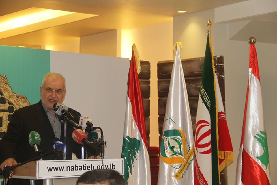 استهل الاحتفال بالنشيدين اللبناني والايراني، وكلمة ترحيب لعضو بلدية النبطية المهندس ربيع تقش، ثم كلمة لرئيس بلدية النبطية الدكتور أحمد كحيل عرض فيها أهمية المهرجان الثقافي الحرفي الاقتصادي الذي تقيمه البلدية بالتعاون مع بلدية قم والذي يؤسس لمرحلة ثقافية من تبادل الحضارات والثقافات بين البلديتين.