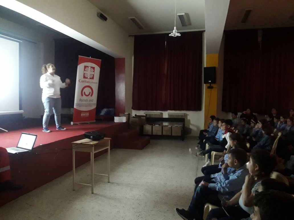 وقد قامت بهذه الحملة ممرضة العيادة النقالة لكاريتاس السيدة جانيت سعد وذلك ضمن مشروع الصحة المدرسية الممول من Polish aid - من وزارة الشؤون اﻹجتماعية لدولة بولندا. وبعد المحاضرة وزعت حصة للنظافة الشخصية لكل تلميذ بمساعدة شبيبة اﻹقليم المتطوعة. وقد استفاد من هذه التوعية 432 تلميذاً.