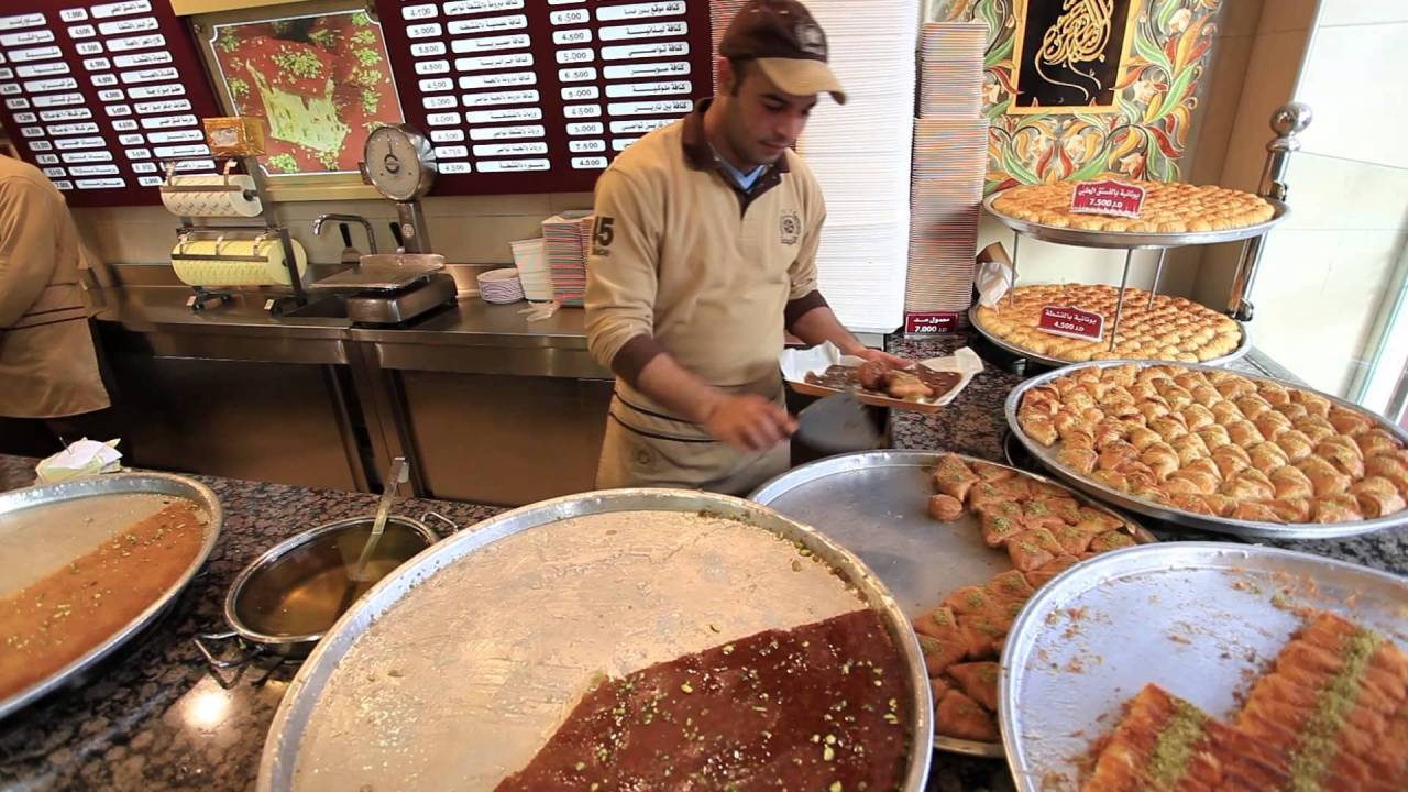 هذه الحلوى تدعى "ليالي الشّام"، وهذه "قرمشتية"، وهذه "ملوكيّة"، وهذه تسمى "مشبّكة" وهذه "سمسميّة"، وهذه "النابلسيّة"، ييتسم الشّاب عُدي النازح من درعا مضيفاً "النابلسية تشبه الكنافة اللبنانية، ولكنّكم تأكلونها بخبزة همبرغر"!