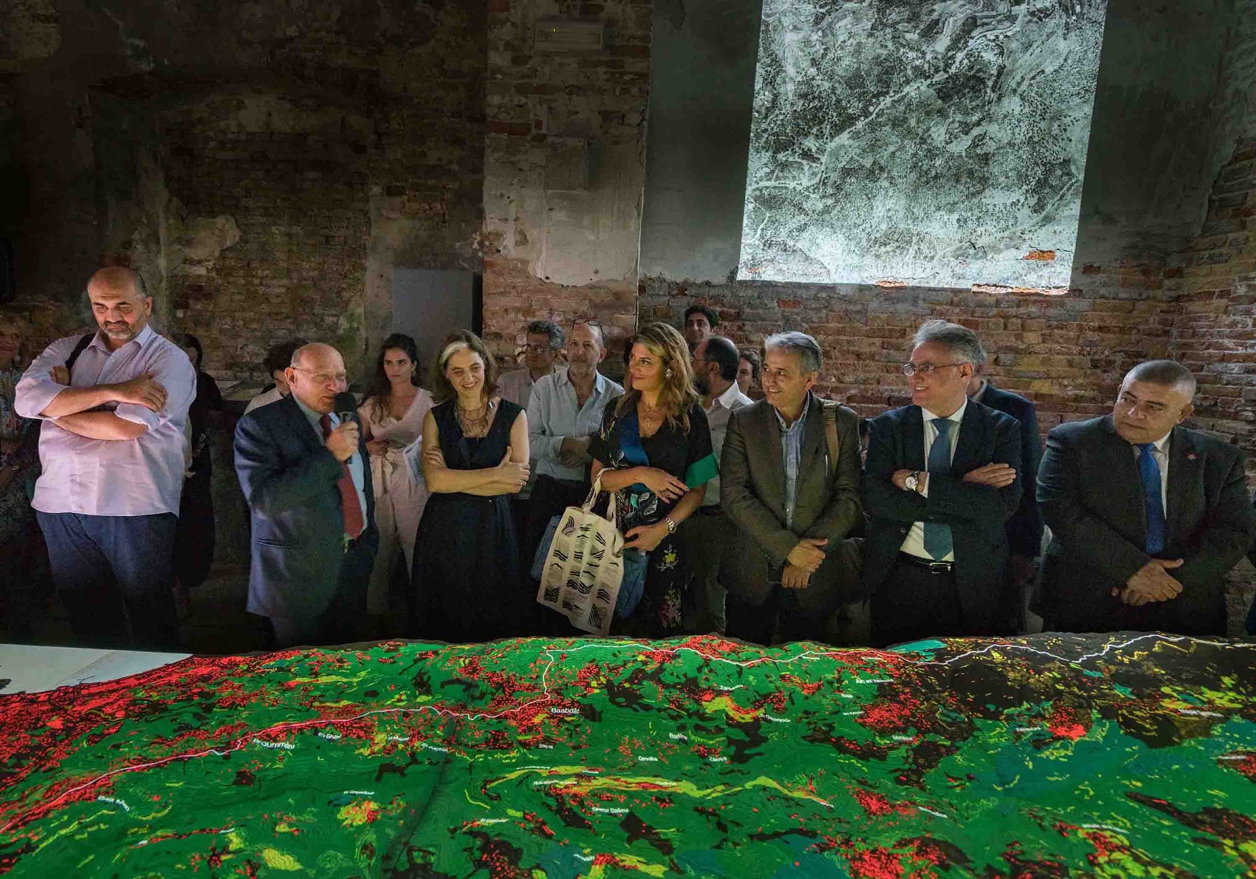حضر الإفتتاح الرسمي للجناح اللبناني في البندقية في 25 أيار كل من: وزير الإعلام ملحم رياشي، سفيرة لبنان في إيطاليا ميرا ضاهر، السفير الفرنسي في لبنان برونو فوشيه، مدير مصلحة الشؤون الجغرافية في الجيش العميد الركن مصطفى مسلماني، نقيب المهندسين المهندس جاد تابت، ممثلة وزير الثقافة لين طحيني قساطلي، رئيس الجامعة اللبنانية الأميركية الدكتور جوزيف جبرا، عميد كلية الفنون الجميلة والعمارة في الجامعة اللبنانية الدكتور محمد حسني الحاج، وممثلين من جامعة القديس يوسف(USJ) وجامعة الأكاديمية اللبنانية للفنون الجميلة (ALBA) وممثلين من المؤسسات الشريكة والمساهمين في المشروع.