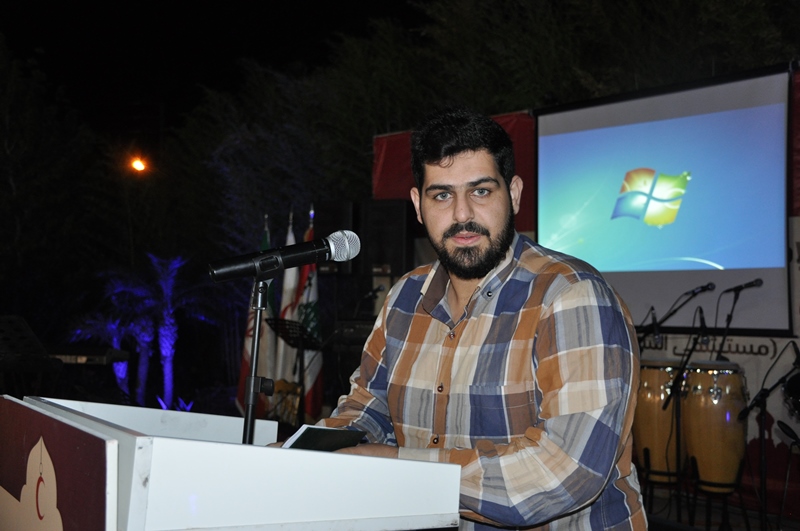 بعد آي من الذكر الحكيم للمقرىء حسين قاسم حايك، ثم النشيدين الوطني اللبناني والايراني، وكلمة ترحيب لمدير العلاقات العامة في المستشفى الزميل رائف ضيا ،فألقى ممثل الهلال الاحمر الايراني في لبنان مدير عام مستشفى الشيخ راغب حرب الدكتور جواد فلاح قال فيها: نبارك لكم جميعا" هذه الأيام المباركة للشهر الفضيل, وهذه الليلة المباركة التي توجت بولادة مولانا الإمام حسن المجتبى عليه السلام، وأرفع أسمى التهاني وأزكاها إلى مقام إمامنا وشفيعنا ومولانا المنتظر روحي وأرواح العالمين لتراب مقدمه الفداء, وإلى ولي أمرنا الإمام السيد علي الخامنئي حفظه الله ورعاه.
