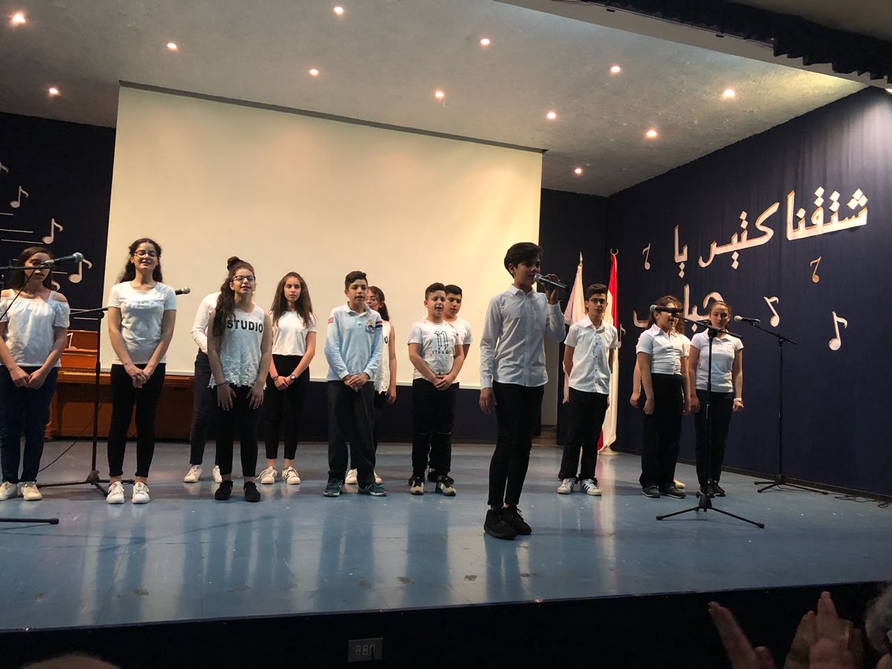 استهل الحفل بالنشيد الوطني. وبعد كلمة الترحيب افتتح برنامج الحفل بترنيمة "حنانك يا رب الأكوان" الشهيرة، وكانت باقة من اجمل أغاني المبدع الراحل قدمها طلاب ثانوية القلبين الأقدسين، بمشاركة نجم ذا فويس كيدز الطالب جورج عاصي.