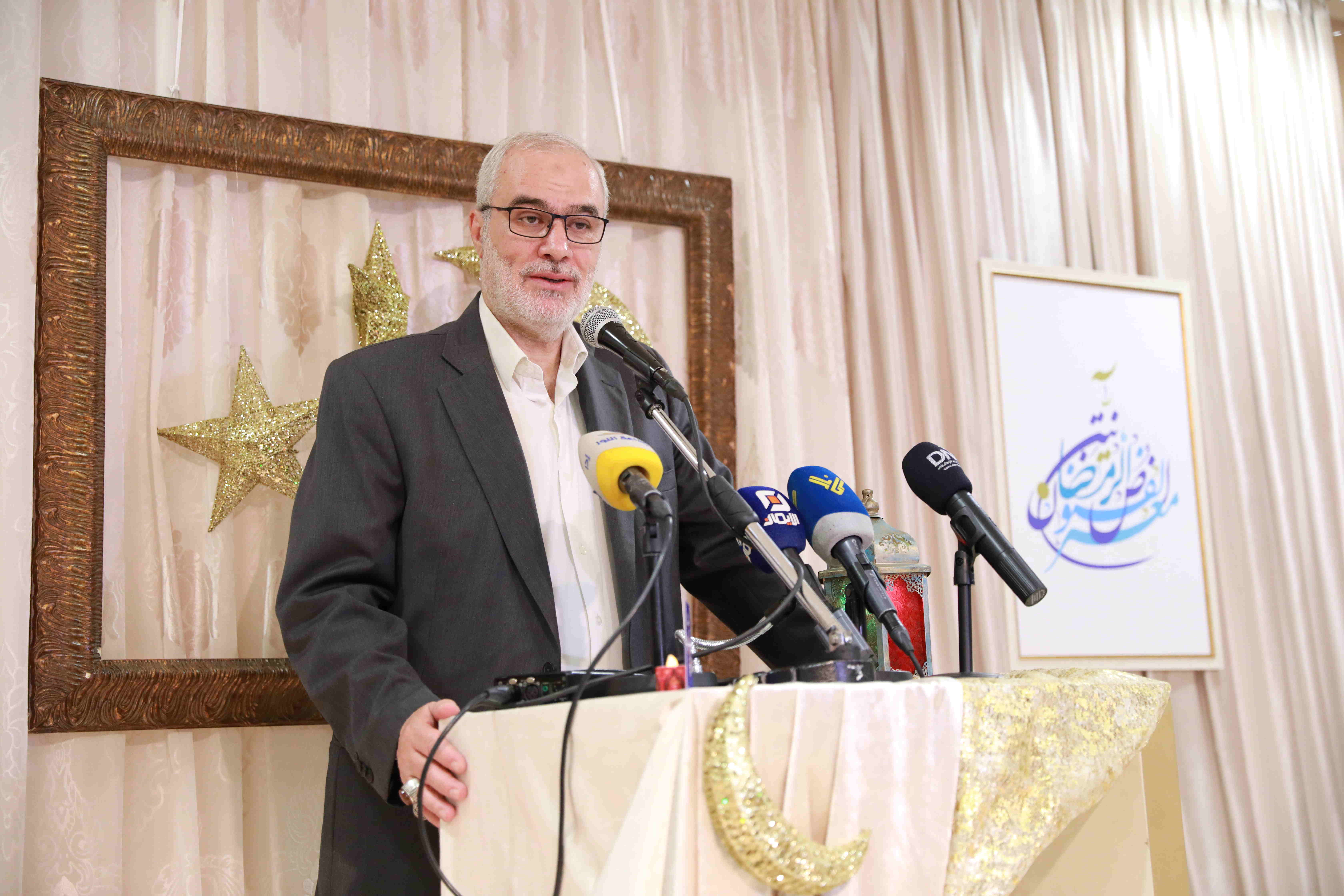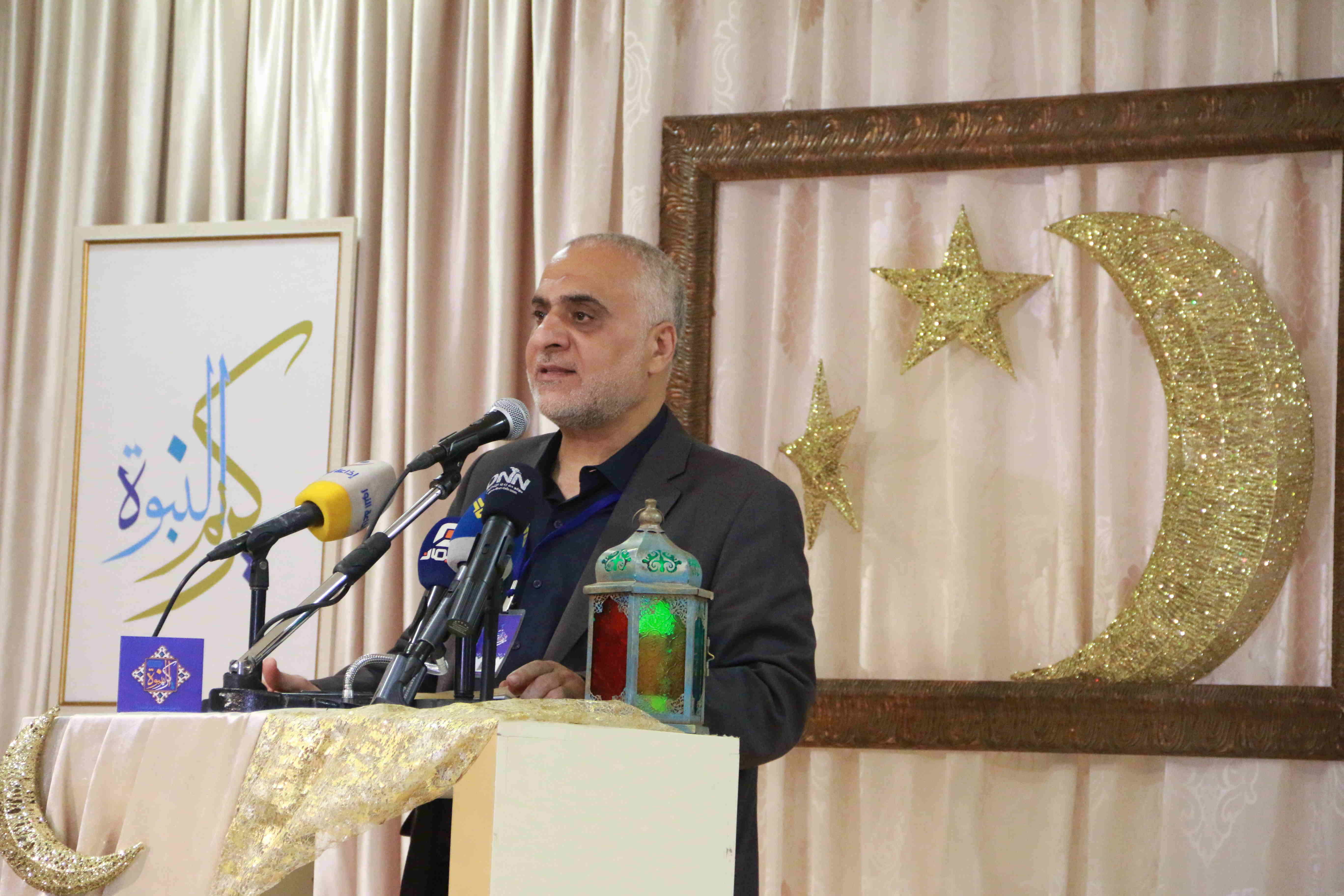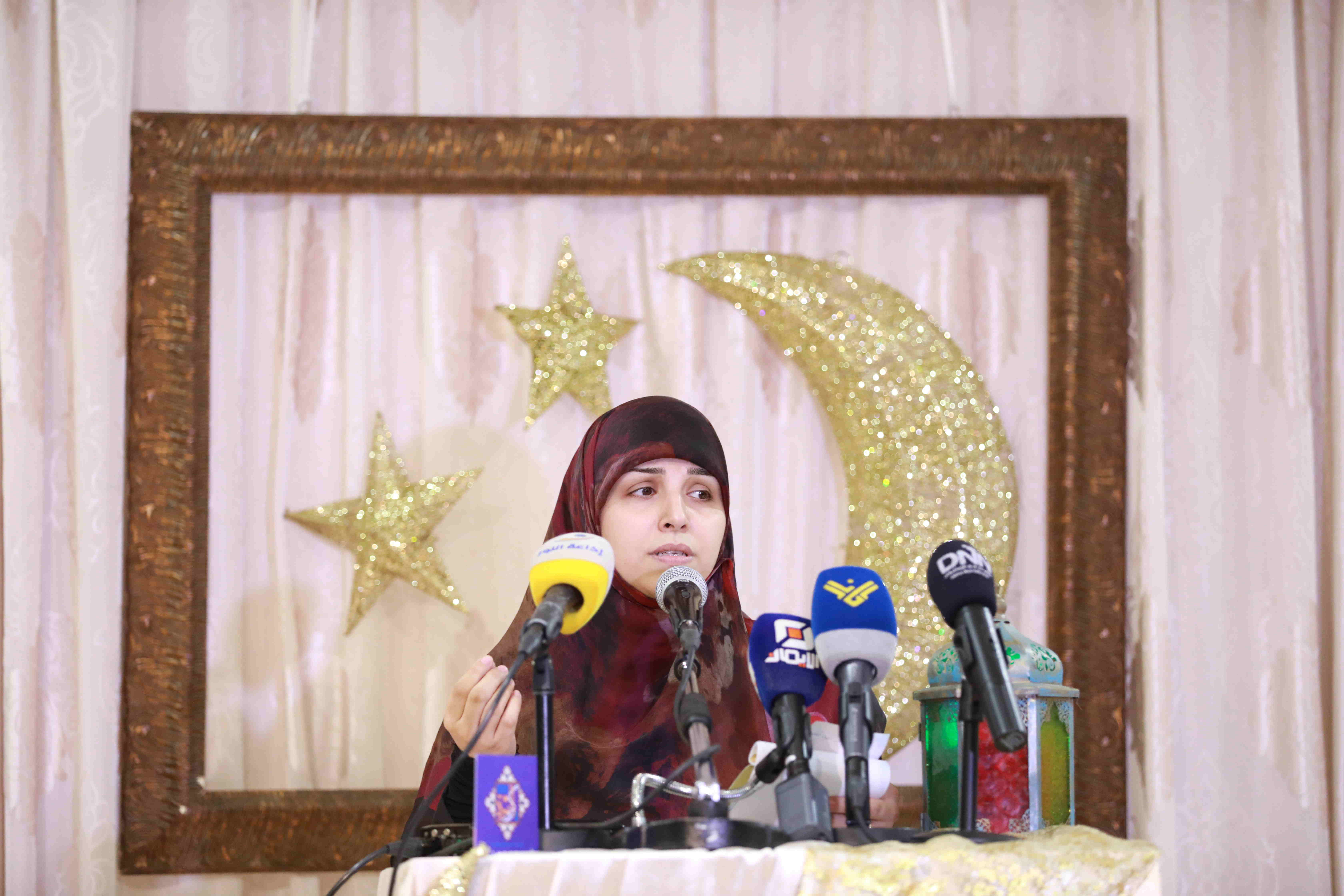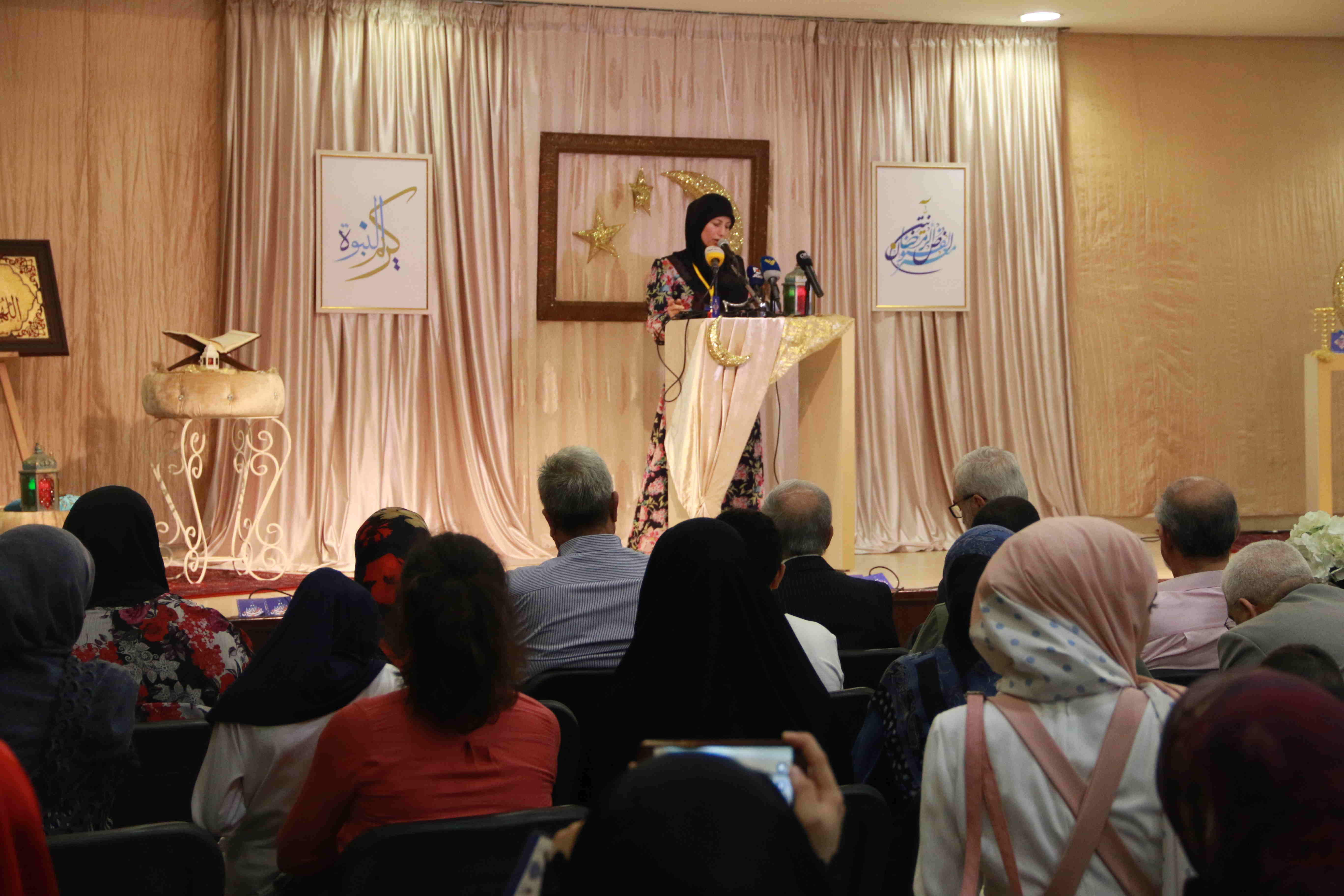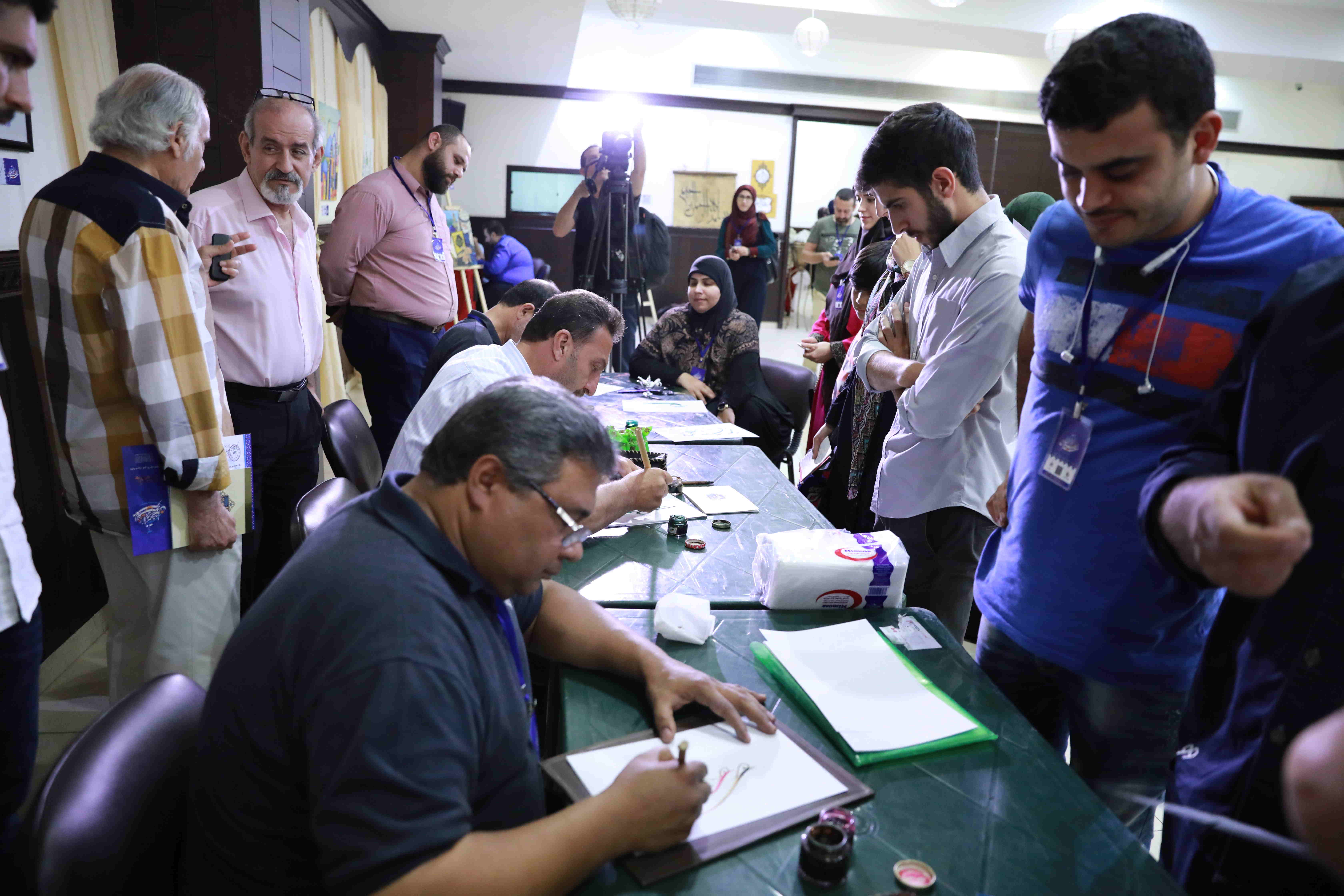 هذه اللوحات المنتشرة في الشق الأيمن من المعرض تتكامل مع لوحات أخرى عن شماله تحوي مخطوطات عربية، حيت تزخر اللوحات بالايات القرانية والزخارف بالخط العربي التي لك أن تتيه في جمال خطوطها المنسابة والمتناسقة. وفي منتصف المعرض هلال ونجمة يتوسطان منصة التكريم في حين تنتشر الموسيقى الرمضانية في الارجاء، وتتلالا الفوانيس في المعرض في جو روحي ورونق رمضاني جميل.