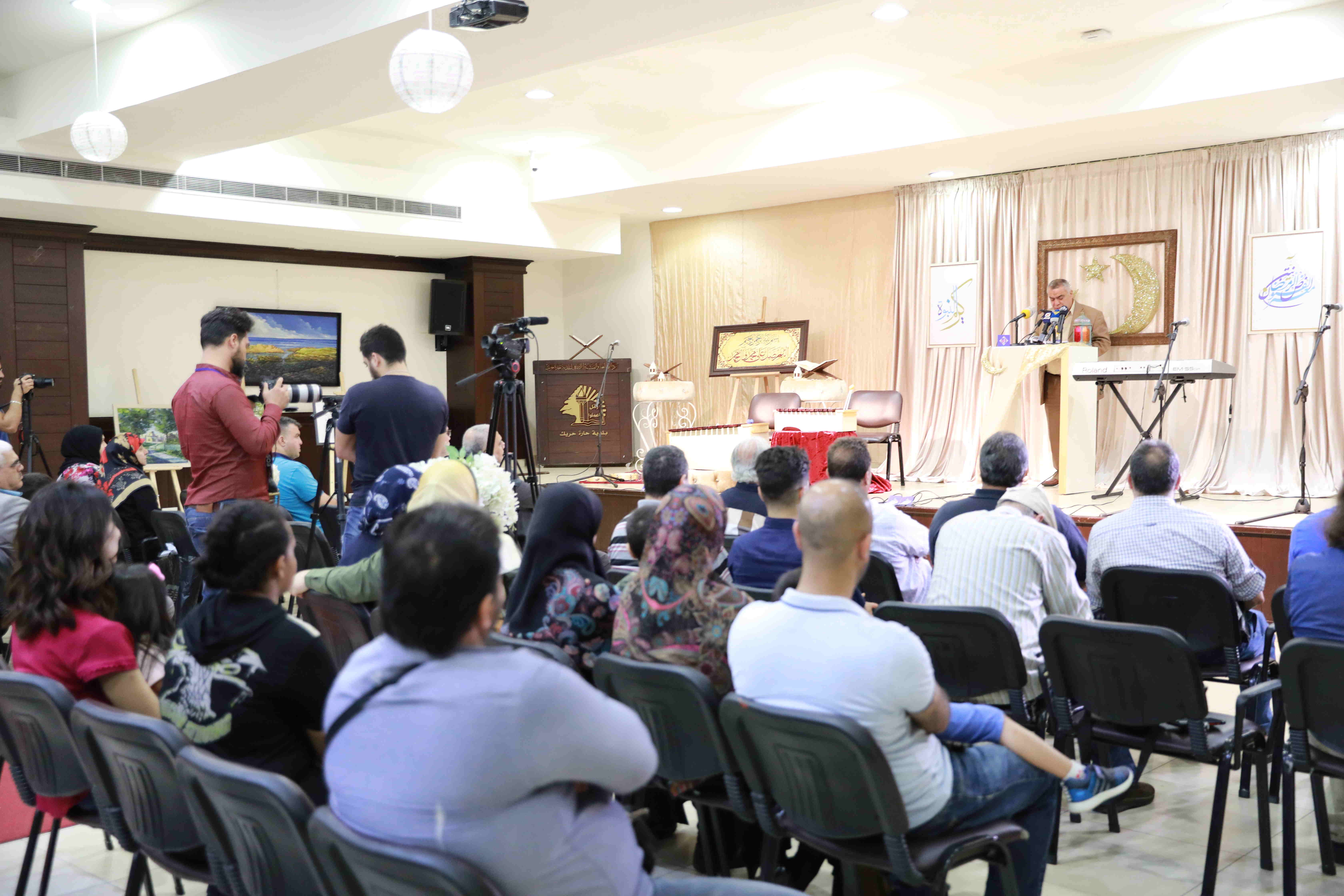 حقا "رمضانُ تجلَّى وابسمَ" في معرض الفنون الرمضانية في المركز الثقافي لبلدية حارة حريك، حيث اللوحات تختصر كل حكايات الشهر الفضيل، اذ تعكس الرسومات كثيرا من رموز التعبّد في شهر الرحمة ، فهنا يد تحمل سبحة زرقاء، وهناك قرآن يتوسط ليلا من اللون الأسود، أما المساجد فتكررظهورها في أكثر من لوحة، في حين ظهرت في لوحات أخرى العمارة الاسلامية، وسرعان ما يسرح النظر في رسومات ضمت شوارع مزينة في الشهر الفضل، فتجول فيها بناظريك حيث ترافقك ابتسامة ترسهما الالوان الزاهية.