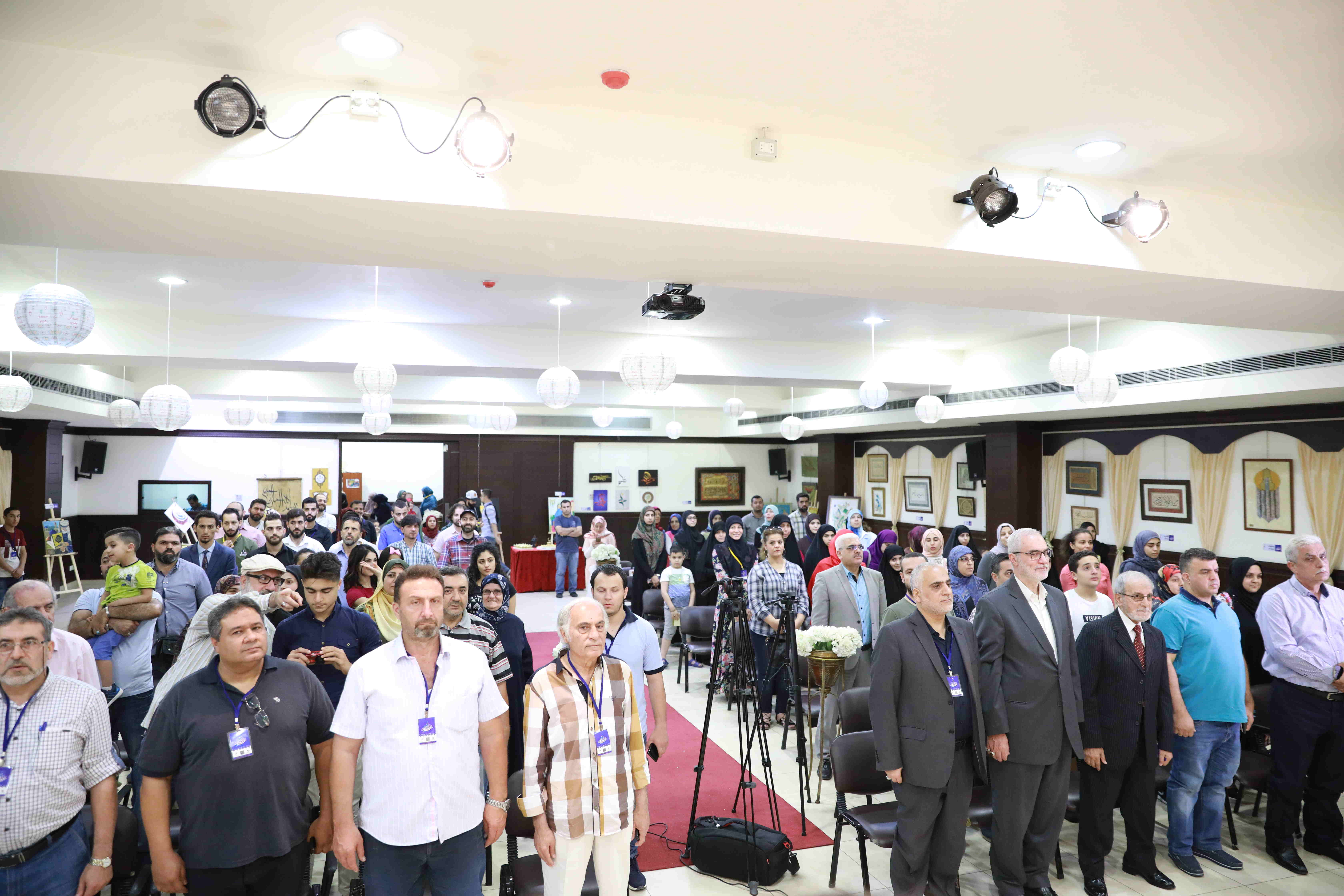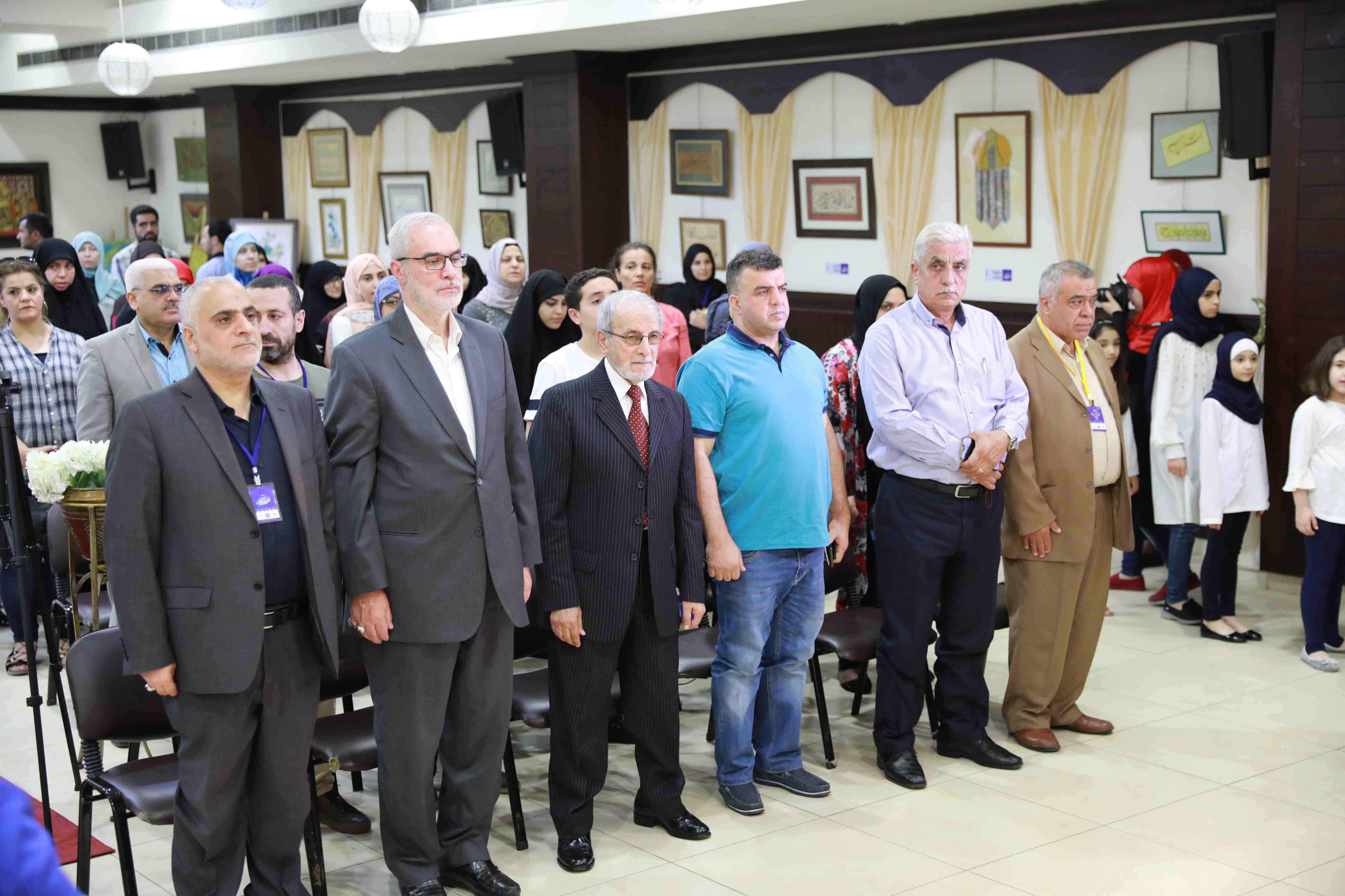 وقد بدأ الحفل بآيات من الذكر الحكيم تلاها النشيد الوطني وكلمة لنائب رئيس بلدية حارة حريك الأستاذ أحمد حاطوم، الذي أعرب عن تعليق الآمال على الجيل الصاعد "أجيال مختلفة تلتقلي وهذا ما يبعث على السرور..ثمة نماذج واعدة في الفن والشعر والأدب"، أما كلمة ابداع -وهي من نظم الحفل بالتعاون مع بلدية الحارة وجمعية الخطاطين اللبنانين- فقد ابدى خلالها رئيس جمعية ابداع الأستاذ علي عباس خالص الشكر لكل المشاركين، معلنا عن افتتاح سلسلة ورش مجانية لتعلُم الخط والزخرفة.