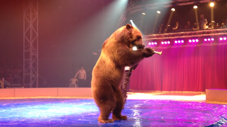 تحول عرض استعراضي لدب مروض في سيرك روسي إلى جولة اقتتال شرس، استدعت تدخل اثنين من مدربي الاحتياط العاملين في السيرك.