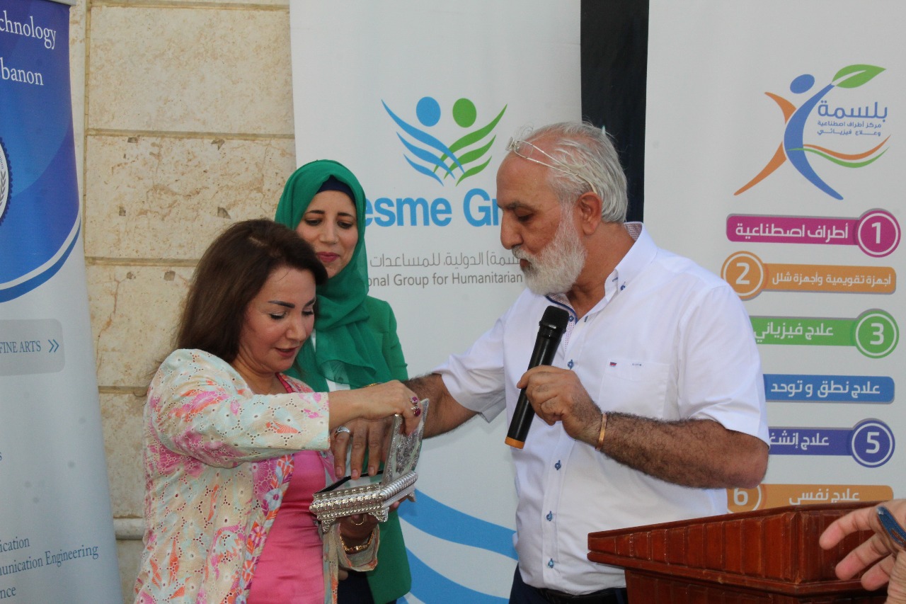 وقد ألقى كلمة جامعة ال AUL الأستاذ نزيه شما ممثلاَ مديرالجامعة الأستاذ فادي طه، وأبدى استعداد الجامعة الدائم لاستقبال جميع الفاعاليات التي تصب في مصلحة المجتمع، وتنمية مهارات الإنسان، كما ألقت مديرة مجموعة بسمة الدولية السيدة غولشان صاغلام كلمة، تحدثت فيها عن أهمية مرحلة الطفولة والشباب، وعن تنمية قدرات الأطفال، ومواهبهم، وحمايتهم كونهم شعاع أمل المستقبل، وعن أبرز مشاريع المجموعة في المجتمعات المهمشة التي تفتقر لأدنى درجات الأمن، والحياة الكريمة، كما عرفت السيدة صاغلام عن مركز بلسمة كشريك استراتيجي لمجموعة بسمة الدولية، ثم ألقى مدير مركز بلسمة الأستاذ رمزي زيدان كلمة، تحدث فيها عن أهمية التوعية المجتمعية، والتنمية البشرية المستدامة للجميع بما فيهم الأشخاص ذوو الإعاقة، وشكر الحضور كلُ بلقبه وصفته، مثنياً على الطاقم التدريبي والتعليمي في المشروع الفنان المبدع أحمد الدنان، الأستاذة سيرين موعد، والأستاذة ديانا عزام.