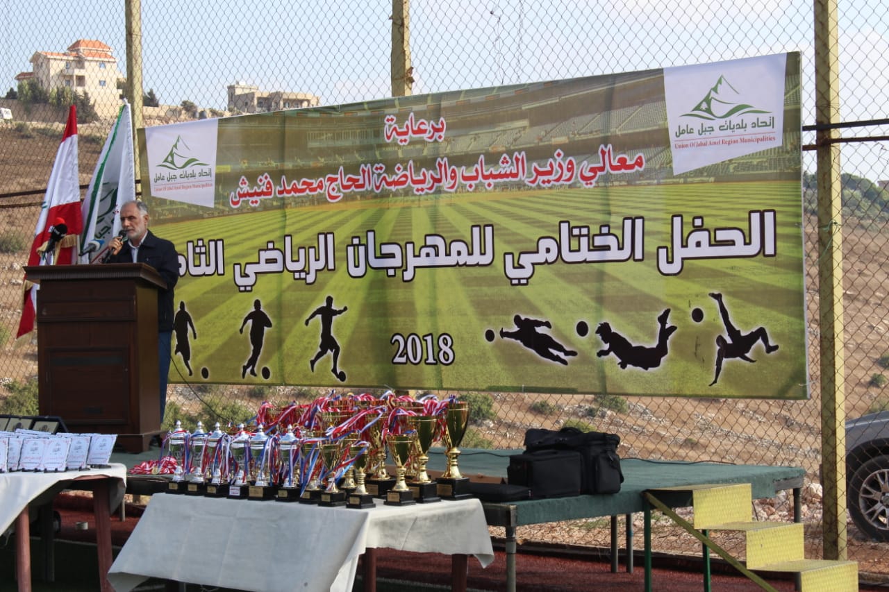 نظم اتحاد بلديات جبل عامل الحفل الختامي لمهرجانه الرياضي الثامن بحفل حاشد على ارض ملعب شهداء المقاومة في بلدة حولا، برعاية وحضور معالي وزير الشباب والرياضة الحاج محمد فنيش، مدير العمل البلدي في حزب الله الشيخ فؤاد حنجول، رئيس اتحاد بلديات جبل عامل الحاج علي الزين ، امين سر نادي العهد الحاج محمد عاصي، وعدد من رؤساء البلديات والمخاتير، ورؤساء الاندية وحشد من المدعوين اضافة الى المكرمين الذين توجوا بالمراكز الاولى في مختلف الالعاب الفردية والجماعية التي شهدها المهرجان .