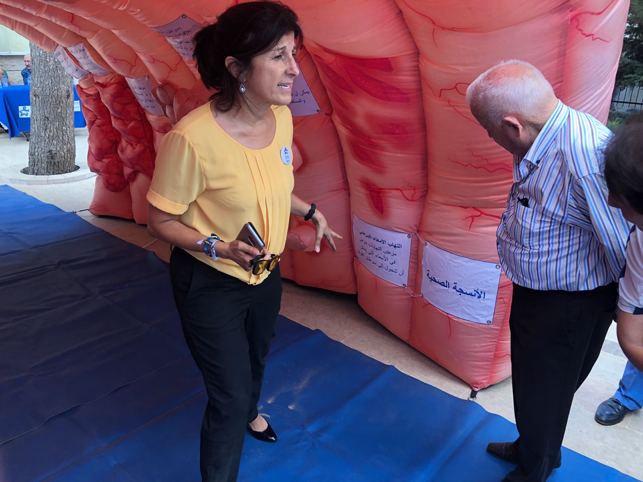 بداية تحدثت هنا نمر عن الجمعية التي تأسست "نتيجة تجربة شخصية بعد أن تم تشخيص إصابة زوجها بسرطان القولون وكان يبلغ من العمر 57 عاما، ما أدى إلى بدء مرحلة من المعاناة الجسدية والنفسية والمعنوية، فيما كان من الممكن تجنبها لو طلب طبيب العائلة فحص "FIT" ابتداء من سن الخمسين مع الفحوصات السنوية".