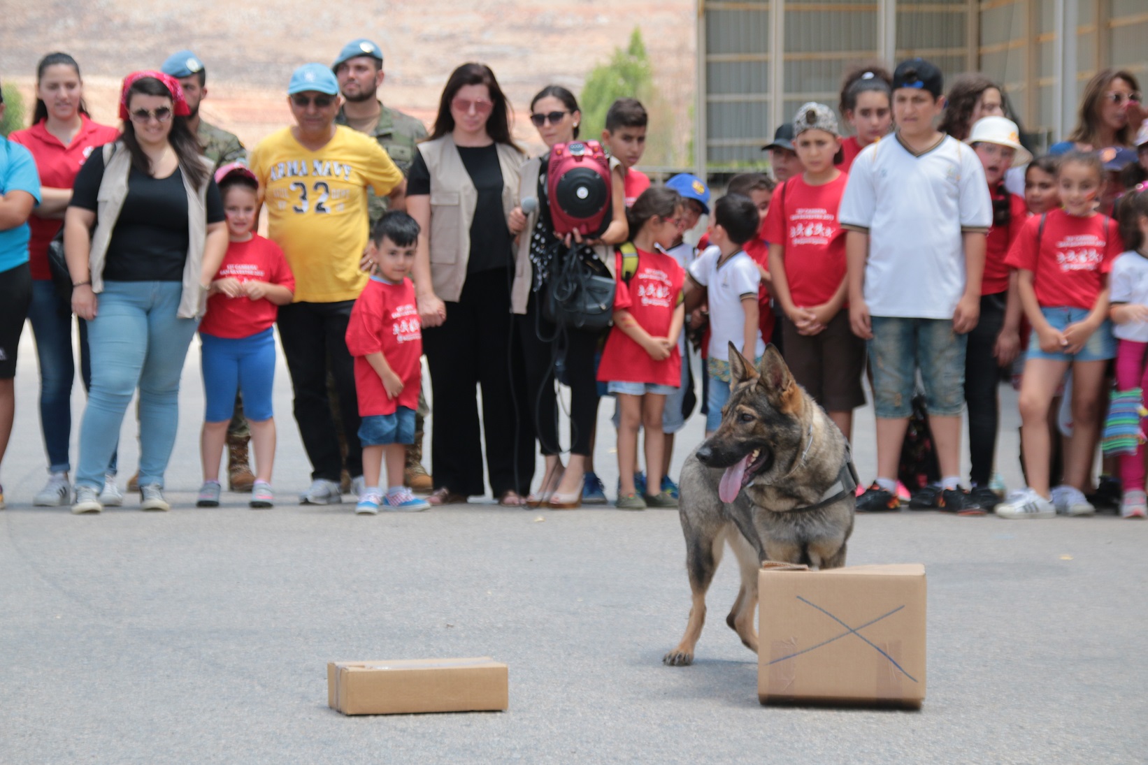 كذلك، تم إصطحاب الأطفال لرؤية آليات ومعدات الكتيبة كما شاهدوا عرضاً للكلاب البوليسية.