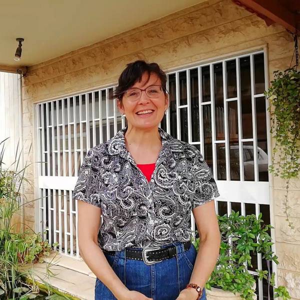 تصل إلى منزلها في الكحالة، تستقبلك بابتسامتها المتفائلة وسط بساط أخضر مفروش بالعشب تتربع فيه بركة صغيرة يطفو على وجهها زنابق الماء.