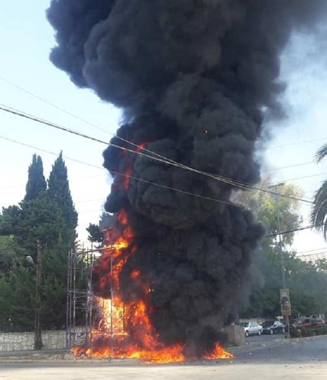 أفاد مندوب الوكالة الوطنية للاعلام في النبطية علي داود أنه صباح اليوم اشتعلت النيران في مجسم عاشوراء في النبطية وهو قيد الانشاء عند مدخل مدينة النبطية الغربي، والذي يجري العمل فيه منذ اسبوع لانجازه وافتتاحه في ذكرى عاشوراء بعد اسبوعين.