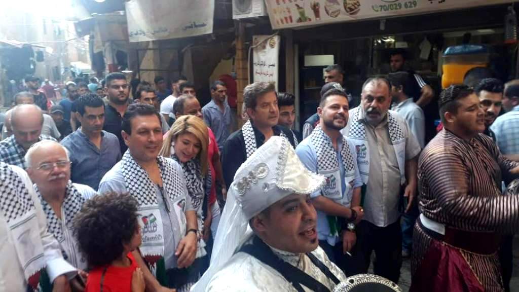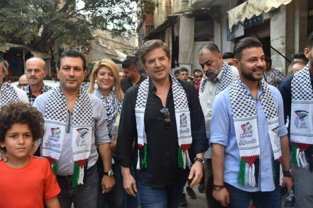 كما وجه التحية لهم الفنان عمار حسن القادم من فلسطين حيث عبّر عن اعتزازه بزيارة المخيمات الفلسطينية في لبنان، لأن المخيم هو أصل الحكاية وهو عنوان العودة إلى فلسطين، ثم قدّم الفنانون وليد توفيق وعمار حسن وأيمن أمين وإبراهيم عيّاش أغانٍ فلسطينية تفاعل معها الحضور.