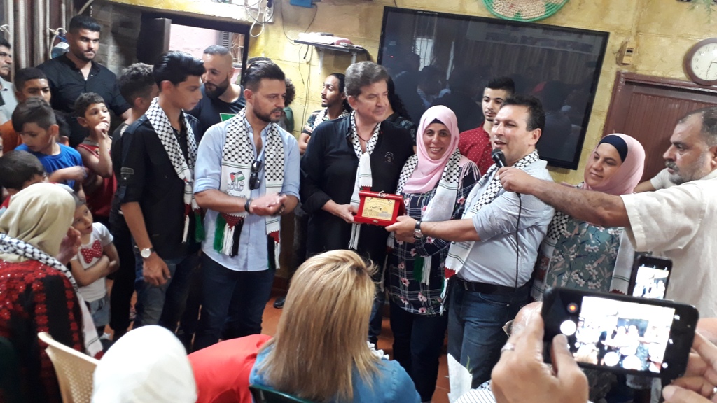 وقد استقبل أهالي المخيم الضيوف بالورود والزغاريد ونثر الأرز والزّفة الشعبيّة حيث جال الجميع في أزفة المخيم وكانت أول محطة لهم في مركز "انسان" لمكافحة وعلاج الإدمان وتأهيل المدمنين حيث استقبلهم مؤسس المركز نمر نمر مؤكداً للضيوف أن المركز يعكس صورة مغايرة للصورة النمطية التي يتناولها الاعلام عن المخيمات الفلسطينية وبالإضافة إلى أنه مركز لعلاج الإدمان فإنه يعلّم نزلائه حرفة يدوية تراثية.