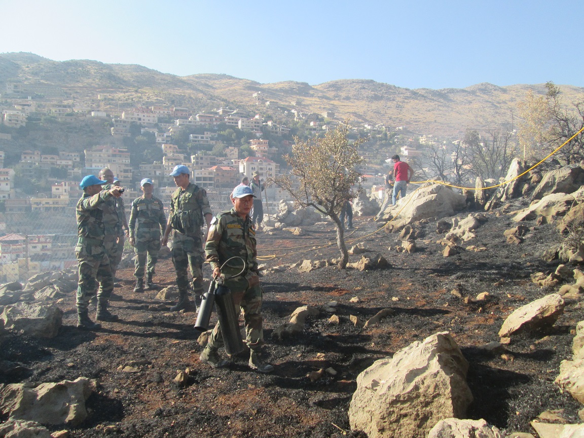 An incident of bush fire had occurred yesterday (04 September) near Chebaa village in the area of responsibility of UNIFIL Indian Battalion. What started out as a local fire was seen spreading towards the village. After the locals failed to contain the fire, they approached the UNIFIL Indian battalion for assistance.