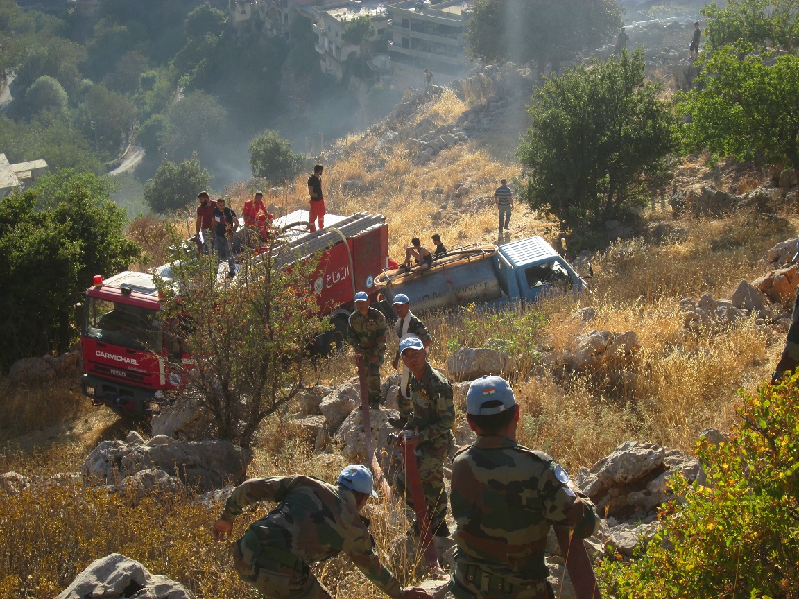 UNIFIL AND CIVIL DEFENCE HELP EXTINGUISH FIRE NEAR CHEBAA VILLAGE