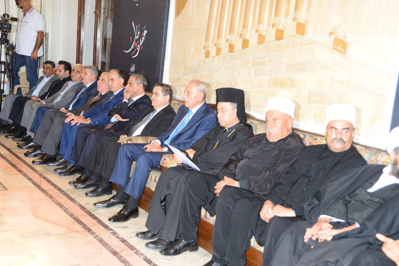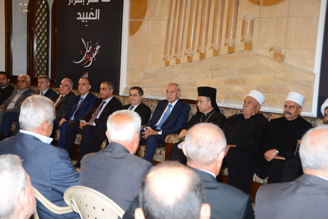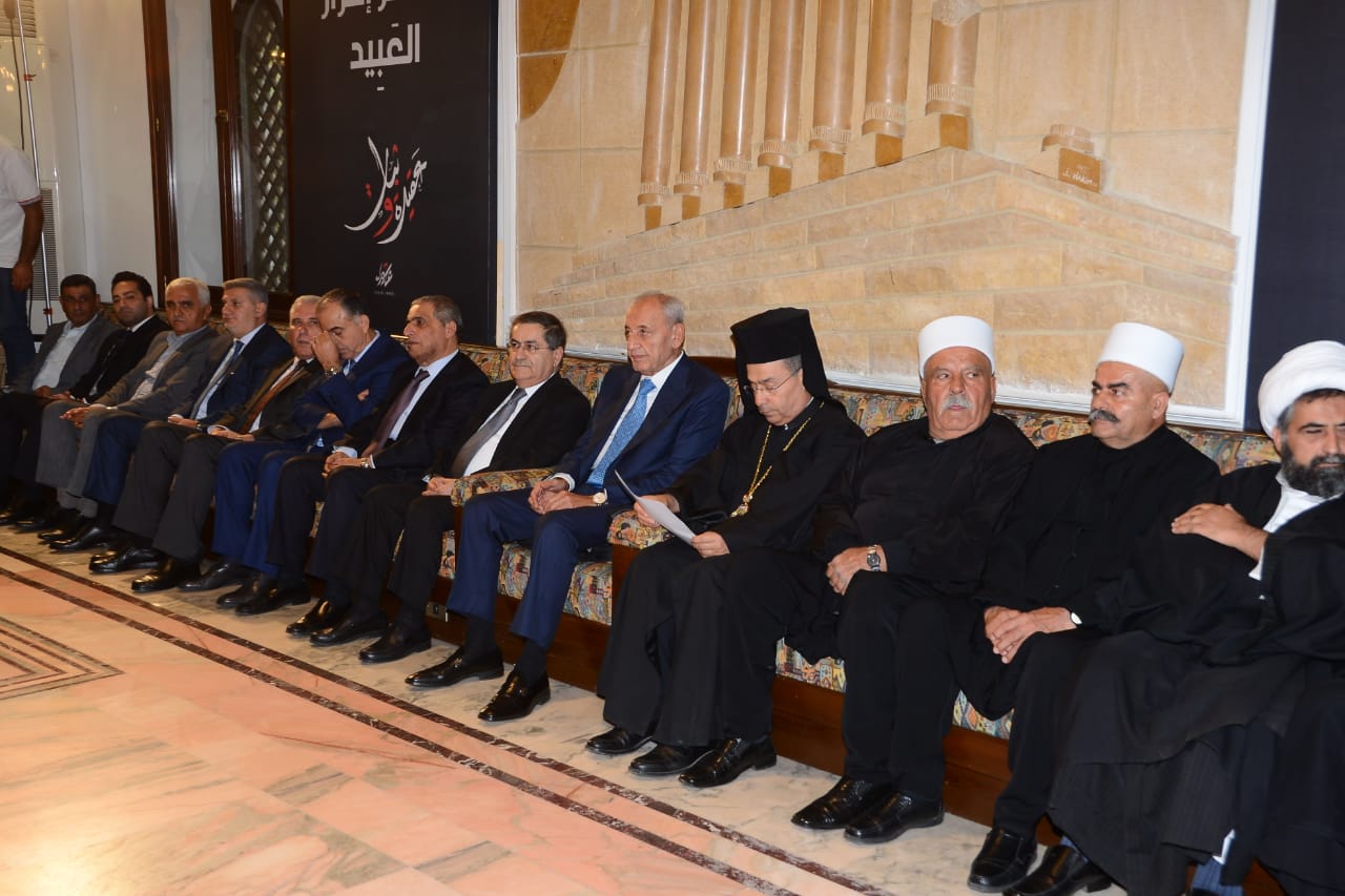 احيا رئيس مجلس النواب اﻻستاذ نبيه بري الليلة الثالثة من ليالي عاشوراء بمجلس عزاء حسيني اقيم في قاعة ادهم خنجر في دارته في المصيلح حضرها الى جانب رئيس المجلس النيابي ، النواب ميشال موسى ، ايوب حميد ، قاسم هاشم ، نائب رئيس حركة أمل هيثم جمعة ، المدعي العام المالي القاضي علي ابراهيم ، مدعي عام الجنوب القاضي رهيف رمضان ، راعي ابرشية صيدا ودير القمر للروم الملكيين الكاثوليك المطران ايلي حداد ، عضوي هيئة الرئاسة في حركة أمل جميل حايك وخليل حمدان ، عدد من اعضاء المكتب السياسي والهيئة التنفيذية في حركة امل ، لفيف من العلماء وممثلين عن الطوائف الروحية ، ووفد من مشايخ طائفة الموحدين الدروز ، رئيس تيار النهضة الشيخ غازي حنينة ، رئيس رابطة مخاتير قضاء جزين جهاد يوسف على رأس وفد من مخاتير المنطقة ، حشد من الفعاليات والقيادات اﻻمنية والعسكرية والقضائية ، رئيسا اتحاد بلديات الشقيف وساحل الزهراني محمد جابر وعلي مطر ، وفعاليات بلدية واختيارية واقتصادية واغترابية وحشود شعبية من مختلف المناطق غصت بهم قاعة ادهم خنجر والباحات المحيطة .