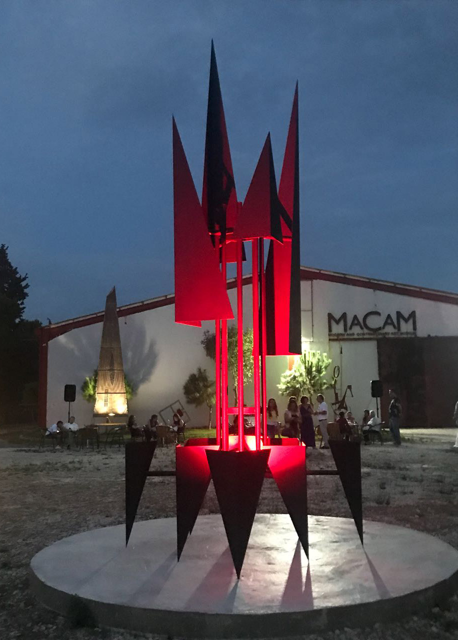 يُذكر أن المنحوتة، البالغ ارتفاعها ستة أمتار، وإسمها "المجتمع" هي التقدمة الثانية من الفنان للمتحف على صعيد المنحوتات الضخمة، إذ سبق أن تبرّع بمنحوتة من المعدن الصلب بارتفاع سبعة أمتار، واسمها "السجين" فور إفتتاح متحف "مقام" (MACAM). كلا العملين مركّزتان في حديقة المتحف، الخاصة بأعمال النحت، والتي تخضع الآن للتطوير.