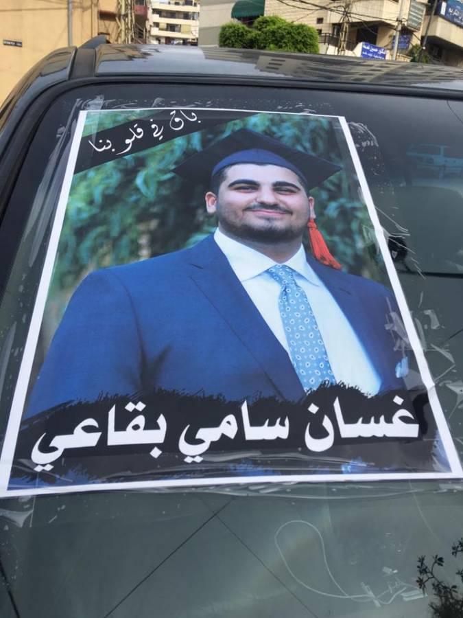 حشود غفيرة شاركت في تشييع الفقيد الذي حمل على الأكتاف ملفوفاً بالعلم الفلسطيني من منزل عائلته بالقرب من دوار القدس الى "مسجد الشهداء"، فمدافن صيدا الجديدة، ليلتحف بعدها التراب معلناً نهاية شاب كانت يفصله عن عامه العشرين اسابيع قليلة، فكما قال والده، "كان سيطفئ شمعته العشرين في الاول من شهر تشرين الثاني، وبدلاً من ذلك انطفأت حياته، رحل عنا بعدما كان مالئاً حياتنا فرحاً وحيوية"، لافتاً" الى أنّ "والدة غسان وشقيقته التي تتابع دراستها الجامعية وشقيقيه يسكنون في ميلانو، اما انا فكنت في لبنان عند وقوع الحادث، حيث تلقيت الخبر الكارثي، تواصلت مع قنصلية لبنان هناك، انجزت اوراق نقل جثمانه، وبعدما اكرمنا الميت بدفنه، أتابع نتيجة التحقيقات لمعرفة التفاصيل وقطع الشك باليقين".