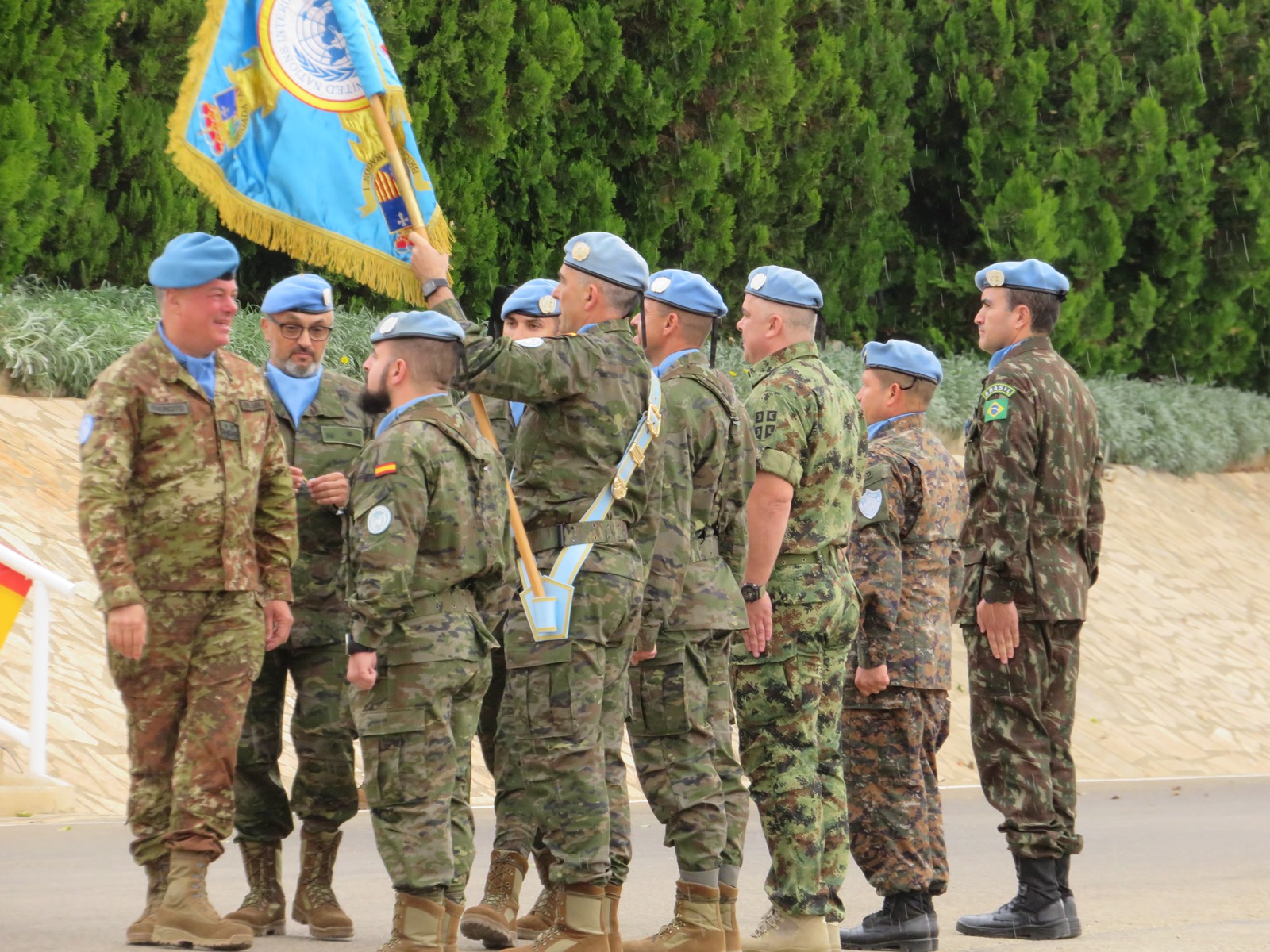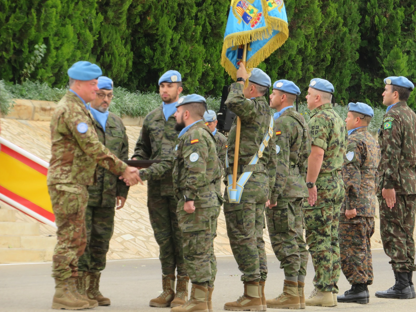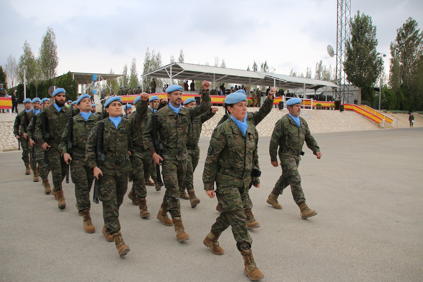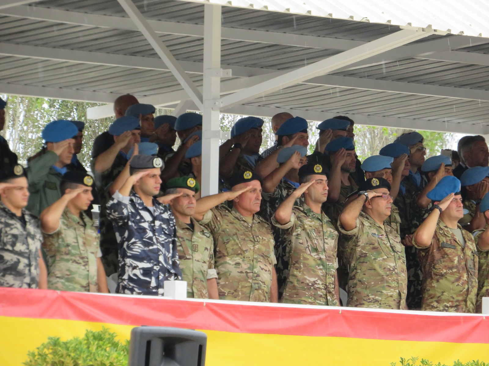 Posteriormente y tras la alocución del Force Commander en la que destacó el trabajo realizado por los componentes de la BRILIB XXIX para contribuir a la paz y la estabilidad en el Sur del Líbano, el General Martínez-Falero se dirigió a los asistentes recordando la efeméride del día de la Fiesta Nacional y exhortando a todos a continuar en la misma línea de dedicación y trabajo en este último tramo de la misión, antes de felicitar a todos los que integran el contingente español, antes de la interpretación del Himno Nacional