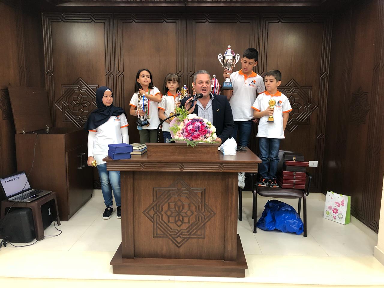 قدمت الحفل الآنسة ليلى الرحيل مرحبة بالحضور وقدمت كل من رئيس البلدية الذي هنّأ فاطمة والمدرب واثنى على دور الجمعية وبرنامجها التعليمي باستقدام الحساب الذهني الى المنطقة واحراز تلاميذنا بطولات عالمية في المسابقة التي جرت في جوهانسبرغ حيث حازت فاطمة بطلة عالمية وغريتا عاصي بطلة اولى من اصل ٦ تلاميذ من سمارت الخيام كانوا قد فازوا في مباريات محلية وحازوا على كؤوس وميداليات من جمعيات اجنبية ومحلية . كما شكر المدرب بلدية الخيام وجمعية السيدات وهنّأ الطلاب المتفوقون والذين حازوا على بطولات عالمية في مدة زمنية قياسية لا تتجاوز السنة ،وفي كلمة للجمعية أكّدت فيها على دور التعليم والمتعلمين وايلائهم اهمية عبر ايجاد مناهج تربوية حديثة تتناسب مع متطلبات العصر لايصال الاطفال الى عمر الشباب وهم محصنين ضد الانحراف، وايجاد برامج داعمة للشباب عبر تاهيلهم ثقافيا وتربويا وحياتيا ،كما دعت الجمعية في كلمتها الى صندوق خاص للشباب المتعلم سموه حساب او قجة للمتعلمين يقدم منح او هبات للتعليم يردها فيما بعد باقساط مريحة لكي يتعلم بها آخرون وهذا الاقتراح برسم الخيرين والمقتدرين وبلدية الخيام للمساعدة في انتشال شبابنا من الضياع،وللعلم فان الجمعية بدات منذ انطلاقتها بمساعدة تلاميذ عبر التسجيل او شراء كتب بالمدارس والجامعات بتمويل خاص من مركز طويل الخيري الاجتماعي والسيد اسعد ضاوي مشكورين على ان يحذو الجميع حذوهم للتخلص من الامية في مجتمعنا الخيامي .وشكرت الجمعية كل من ساهم وساعد فاطمة للسفر الى جوهانسبرغ كبلدية الخيام ومركز طويل الخيري الاجتماعي وسفريات العجوز .وفي نهاية الحفل قدم رئيس البلدية درع تقدير لفاطمة عطوي وجائزة مالية كما قدم درع تقدير للمدرب ناجي القيس، وقدمت التعبئة التربوية دروع تقديرية لفاطمة عطوي للانا خريس وفاطمة خريس وعلى خريس على ان يقدم لاحقا درعين لغريتا عاصي وعلي فواز .واخيرا تقدمت ام فاطمة عطوي بالشكر لكل من ساعد وساند وهنّا فاطمة،وأخيرا شكرت الجمعية الحضور والفعاليات الذين لبوا الدعوة كما شكرت الصحافة وسيدات الجمعية وموقع خيام دوت كوم.