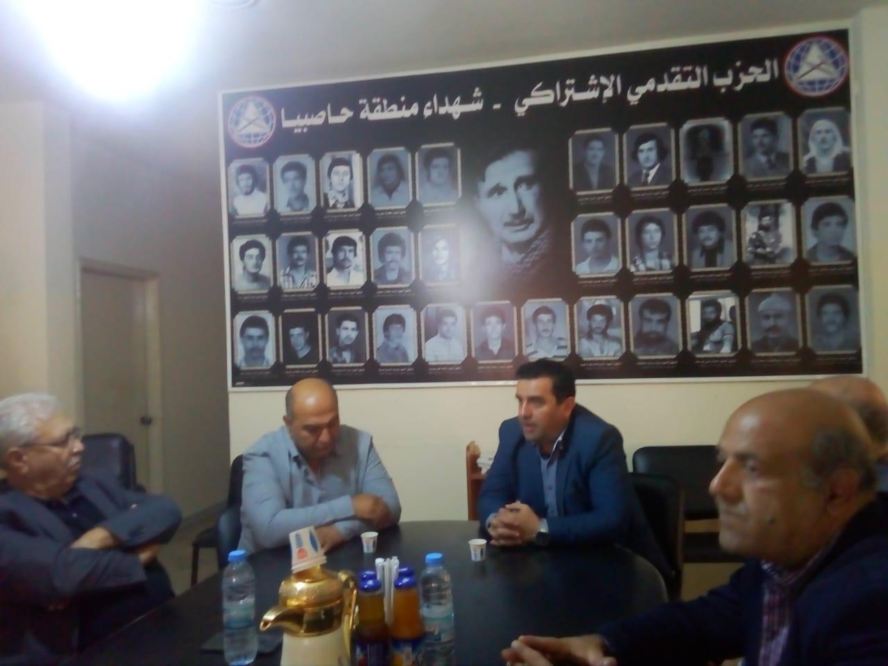 في إطار متابعة زياراتها للقوى و الأحزاب السياسية في المنطقة زار وفد من قيادة منطقة مرجعيون - حاصبيا في الحزب الشيوعي اللبناني مركز الحزب التقدمي الإشتراكي حيث ضمّ الوفد مسؤول المنطقة الياس اللقيس وأعضاء من مكتب الهيئة حيث استقبلهم وكيل الداخلية شفيق علوان والمعتمدين فريد ابو حمد ووليد شاهين ومدير فرع حاصبيا حسام سابق.