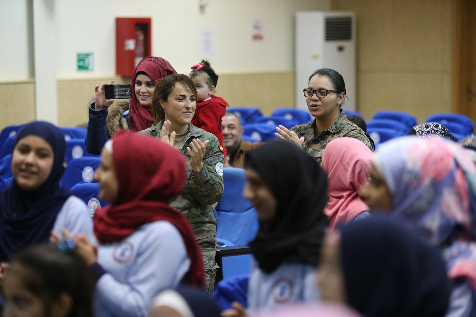 كما شاهدوا عرضاً مباشراً لعمل الكلاب وتلقوا شرحاً موجزاً عن طبيعة عمل وحدة التعاون المدني العسكري (CIMIC) بهدف دعم السكان ، ومن ثم تمكنوا من التعرف على مختلف جوانب الثقافة الإسبانية من خلال مقاطع الفيديو التي تم عرضها.