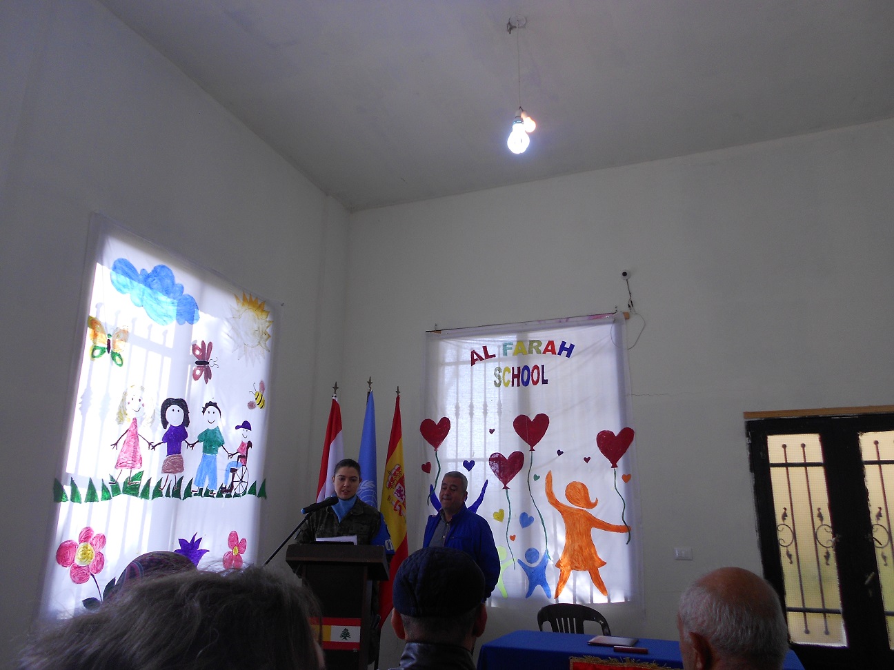 اننا على وشك انهاء تنفيذ المشاريع ذات التأثير السريع للكتيبة الاسبانية التاسعة والعشرون BRILIB XXIX ، واليوم تم إفتتاح مشروعين ممولين من المملكة الاسبانية. حيث مثلت الرائد الياغا مسؤولة وحدة التعاون المدني العسكري (CIMIC) ،قائد القطاع الشرقي في اليونيفيل.